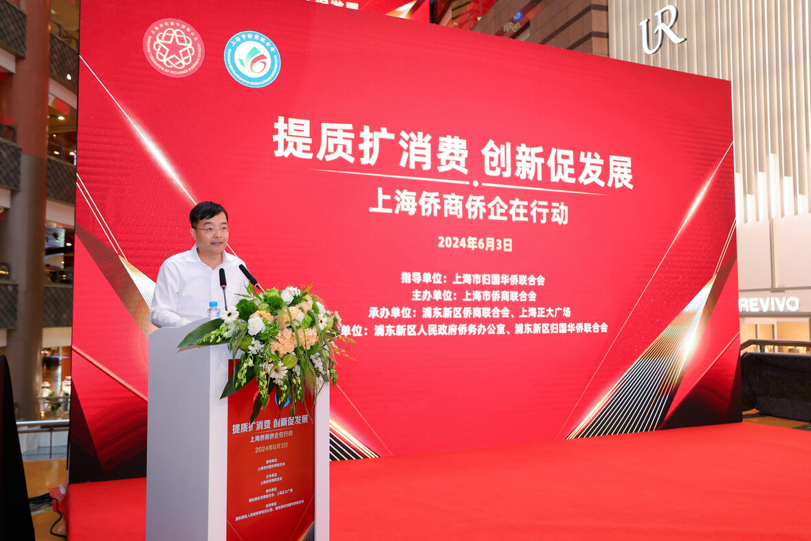 浦东新区区委常委、统战部部长张峰在致辞中表示,浦东新区开发开放34年来,侨商侨企已成为推动浦东新区创新发展的重要力量。当前,浦东新区正积极响应商务部“把全年定位为消费促进年”的号召,通过一系列活动激发消费活力。他期望更多侨商侨企选择浦东、扎根浦东,共同分享发展机遇,为浦东新区乃至上海的高质量发展贡献力量。