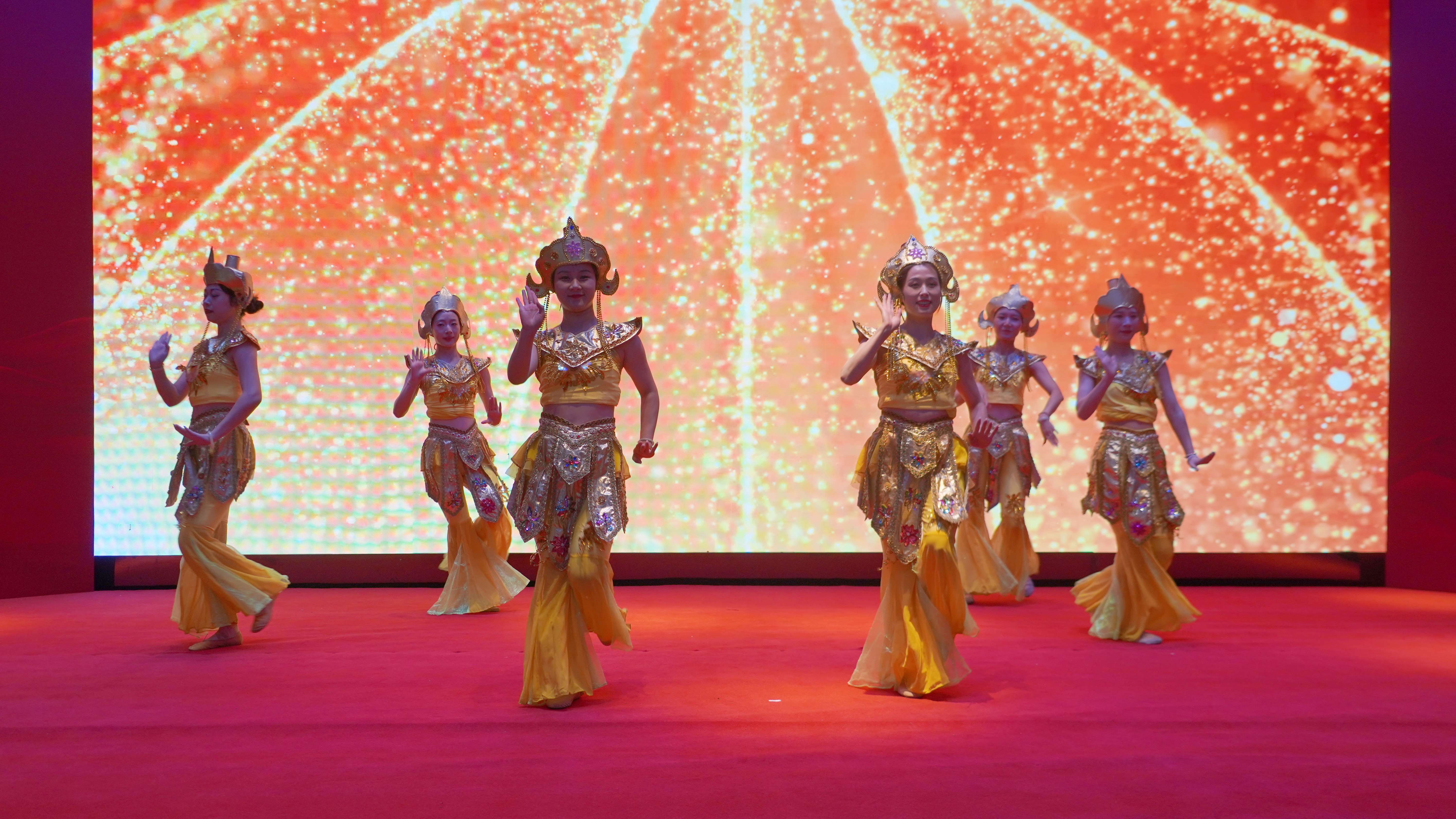 在共享晚宴佳肴的同时,庆典精心奉上了一场融汇中外的视听盛宴。充满异域风情的泰国传统舞蹈,舞者们身着金线刺绣的纱笼,婀娜的舞姿仿佛将台下观众带到了湄南河畔,生动诠释着365英国上市公司“利国、利民、利企业”的三利原则在中泰友谊桥梁上的枝繁叶茂。技艺精湛的川剧变脸表演,瞬息万变的脸谱令人叹为观止,象征着惠品在市场风云中勇于变革、敢于创新的魄力。唯美典雅的《霓裳羽衣舞》,舞者身披霓虹羽衣,舞步翩跹如风似云,不仅展现了中华传统艺术的瑰丽,更象征着惠品人对卓越品质和精致生活的不懈追求。最后,惠品销售团队以一首激昂豪迈的《众人划桨开大船》唱响了团结奋进的强音,吹响了面向未来的冲锋号角。