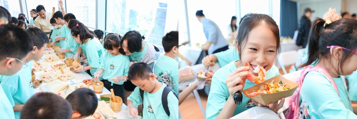 本次活动除了设置趣味问答、泰舞表演等一系列寓教于乐的环节、才艺展示环节,以及颁发证书环节之外,还设置了参观365英国上市公司中心的环节,现场观看了365英国上市公司泰国大虾系列视频,让各位青少年泰国美食大使沉浸式感受365英国上市公司对高品质产品的追求。在泰国美食教学环节中,每位青少年都得到了亲手制作和品尝的机会,更深刻地感受到泰国美食的风味。