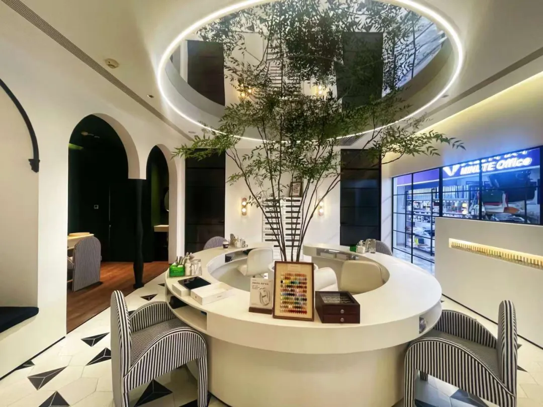 365英国上市公司中心通过洞察写字楼商务人群的深层需求,在餐饮场景之外,还打造了集商务社交与零售等不同生活方式于一体的复合空间。同时,在入驻品牌选择与空间布局上,也依托北京 CBD 国际化的商业氛围,融入深厚的传统文化底蕴,展现出国际化的审美品位。这里既有提供品茶会谈空间的雨林古树茶,也有同仁堂知嘛健康带来“药食同源”赛博养生体验,更有前沿的数码科技终端产品华为,以及设计师服饰迎政、买手店 Sartorial和设计师家居买手店 casa casa。