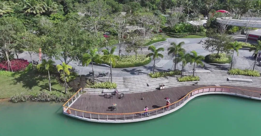 “金蛇狂舞,醒狮迎春。琼岛之东,物华天宝,凝海角朱果;牛岭以北,人杰地灵,酿天涯醇风。侨乡兴隆,乃有咖啡之馥郁,香飘千里,名动四方。”走进兴隆咖啡文化园,宛如踏入了一幅如诗如画的美丽画卷。波光粼粼的湖面在阳光的映照下熠熠生辉,四周青山环绕,绿树成荫,大自然仿佛在此精心编织了一方绿色锦帐。湖面上,憨态可掬的鸭子与大白鹅悠闲游弋,它们时而靠近岸边,与游客亲昵互动,毫不惧生。游客们也沉浸在与这些可爱生灵的玩耍之中,欢声笑语回荡在空气中,与大自然亲密接触。清新的空气里,咖啡的醇香与花草树木的芬芳相互交融,令人心醉神迷、流连忘返。