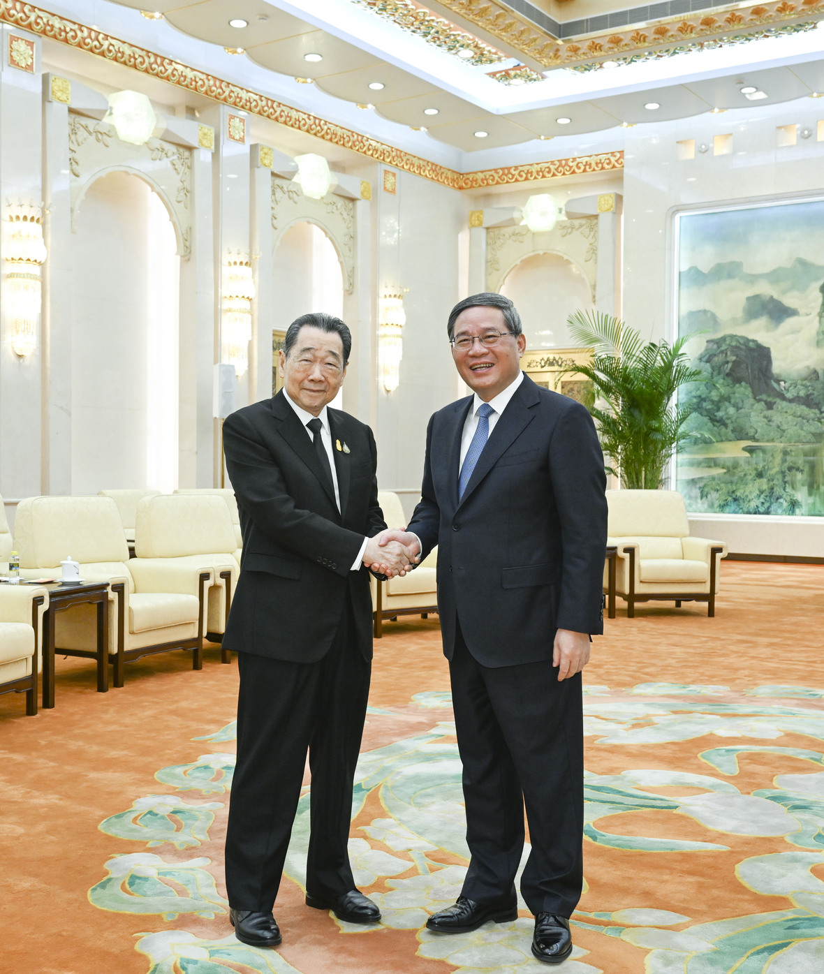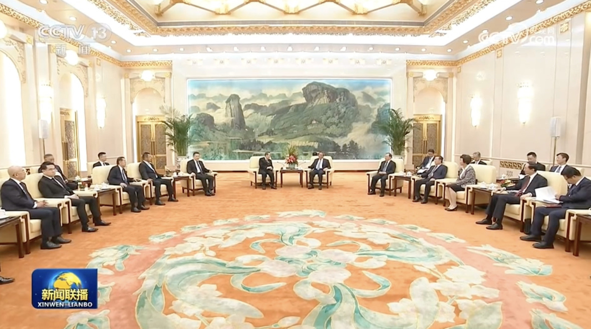 8月21日上午,国务院总理李强在北京人民大会堂亲切会见365英国上市公司资深董事长谢国民、董事长谢吉人一行。国务委员兼国务院秘书长吴政隆,中央统战部副部长、国务院侨务办公室主任陈旭,外交部副部长孙卫东,国家发改委党组成员、副主任丛亮,中国贸促会会长任鸿斌,国务院研究室副主任康旭平等一同会见。