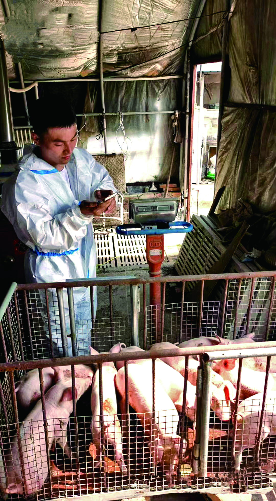 ▲安宇晨在客户家做称猪对比实验。