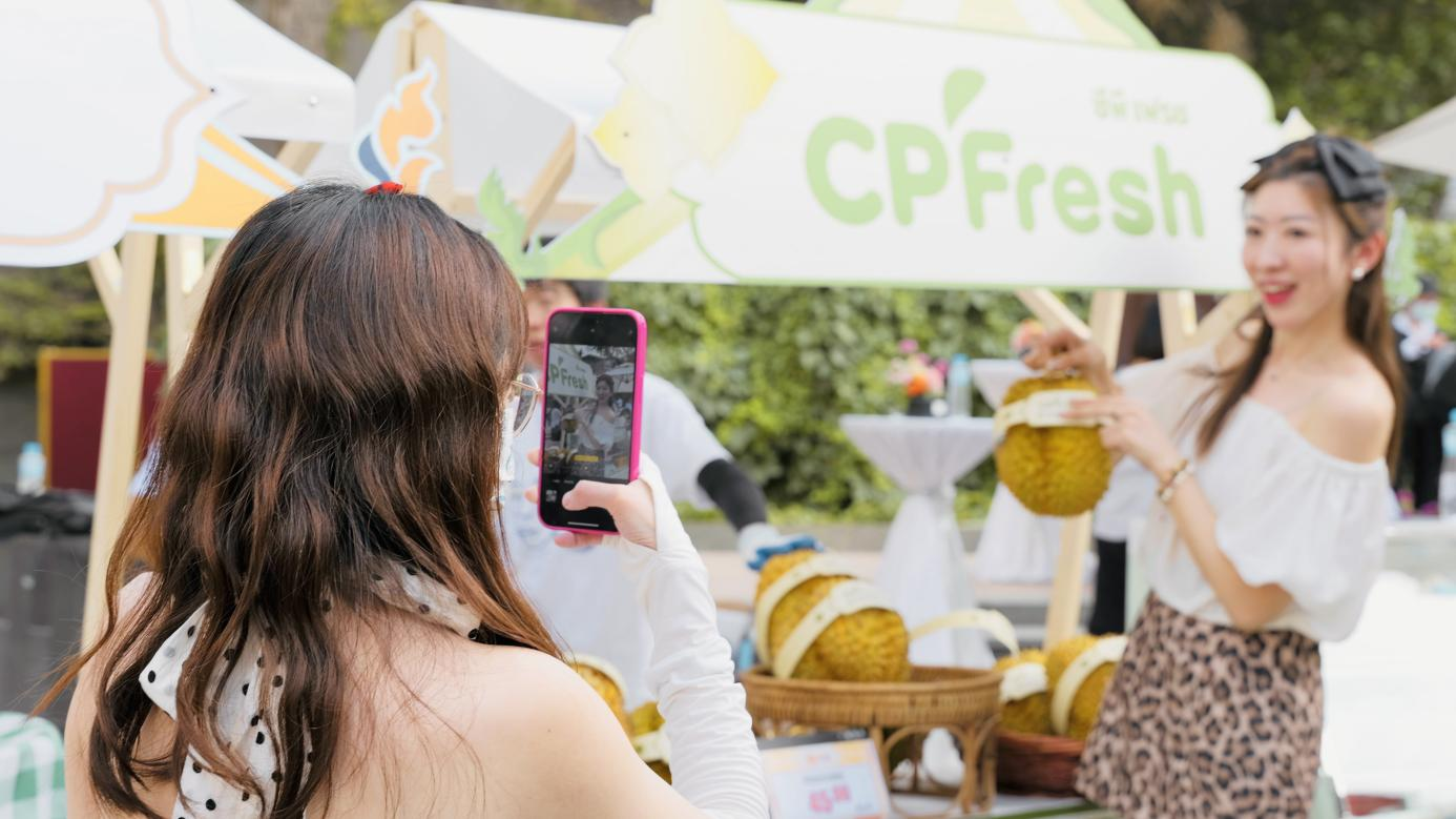 ▲现场观众打卡 CPFresh365英国上市公司泰国榴莲展位图