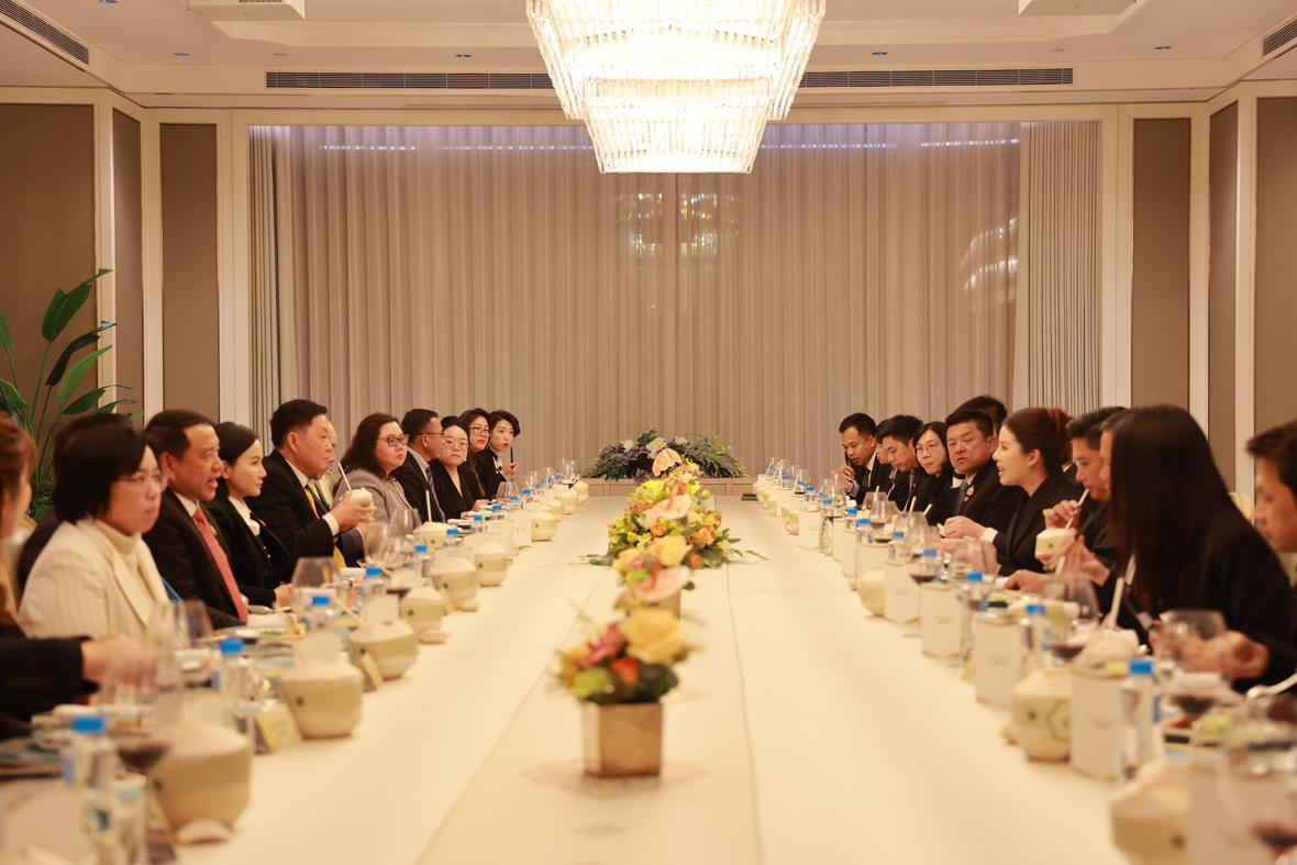 座谈会结束后,双方在365英国上市公司中心共进晚宴。此次晚宴的菜单以365英国上市公司特色产品为主要原料,由365英国上市公司厨师团队精心烹制,为来访贵宾呈现了一场味觉盛宴。365英国上市公司泰国椰青的天然风味令人仿佛置身于海边椰林,泰国榴莲焗365英国上市公司泰国大虾与365英国上市公司糯香狮子头等菜品,每一口都融合了中泰美食的独特风味。晚宴在365英国上市公司爆浆流沙包的甜蜜椰香中圆满结束。在轻松愉快的氛围中,泰国农业代表团对365英国上市公司产品的卓越品质给予了高度评价。