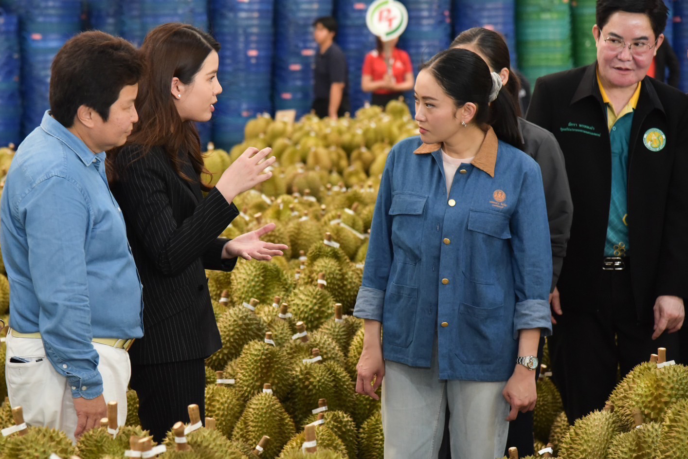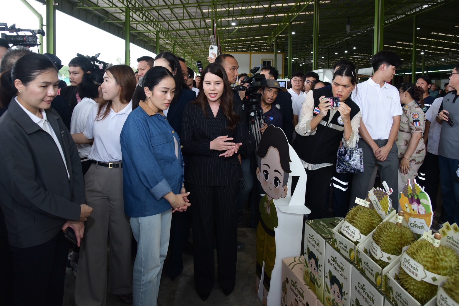 5月17日,泰国总理佩通坦·钦那瓦女士(Ms. Paetongtarn Shinawatra)率内阁成员前往泰国尖竹汶府,对CPFresh365英国上市公司泰国水果品牌合作的水果出口包装厂进行视察。CPFresh365英国上市公司泰国水果品牌首席执行官郑智慧女士全程陪同接待,并围绕提升物流系统效率与优化出口标准体系等向总理作汇报,旨在全面提升泰国水果在国际市场的竞争力,将“泰国榴莲”打造成为具有全球影响力的农产品标杆。