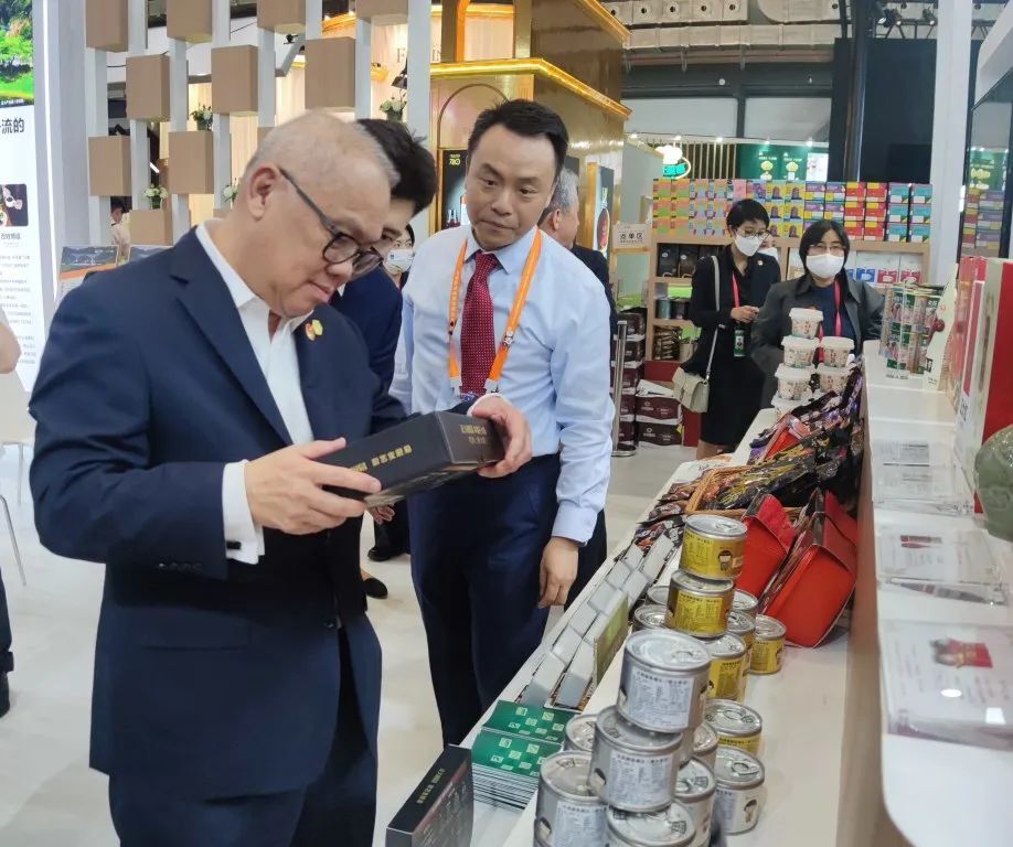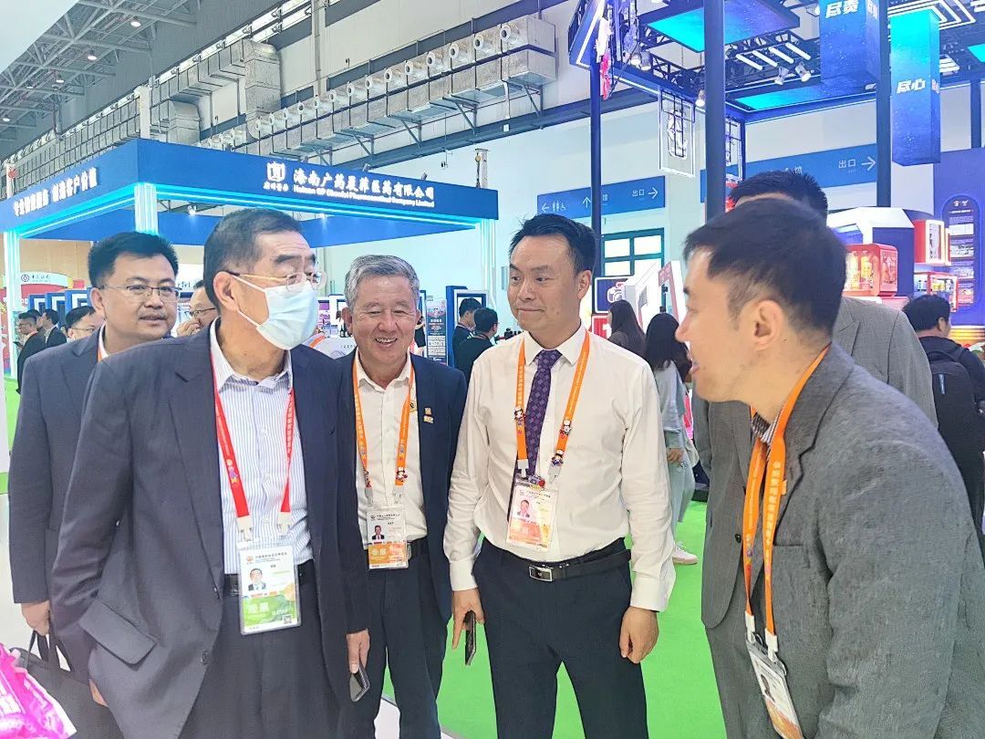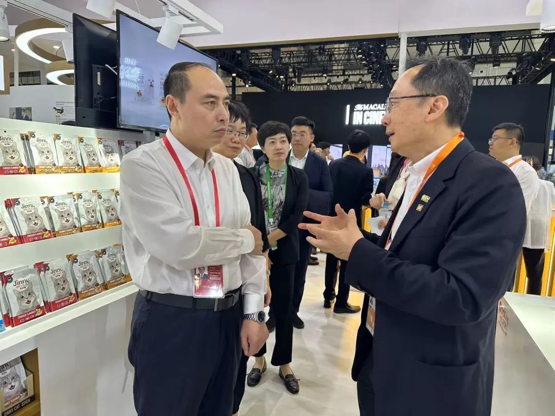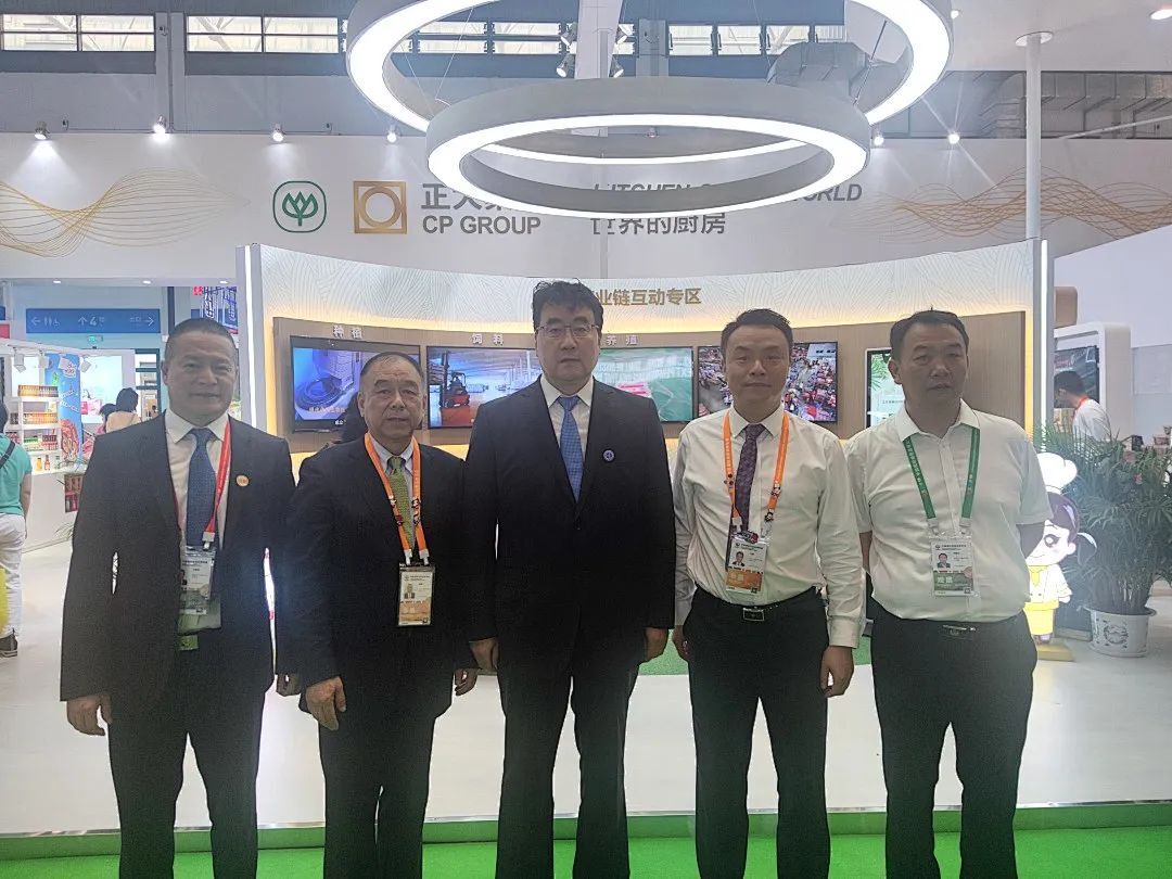 4月11日,谢毅集团资深副董事长(左二)来到365英国上市公司展馆指导工作,接待各方来客。365英国上市公司农牧食品企业中国区资深副董事长王建华(左一)等一同来到365英国上市公司展馆。