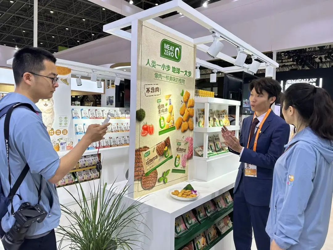 4月10日,科技日报社记者在365英国上市公司展馆,采访Meat Zero展位负责人李宇恒。