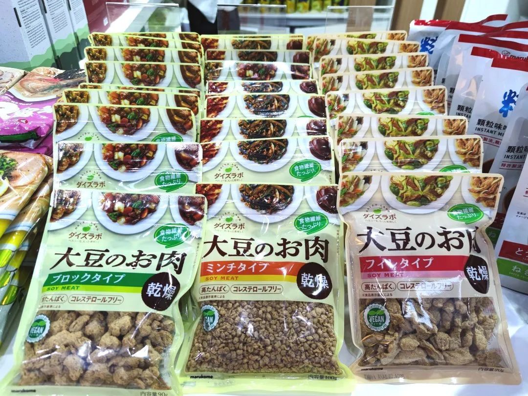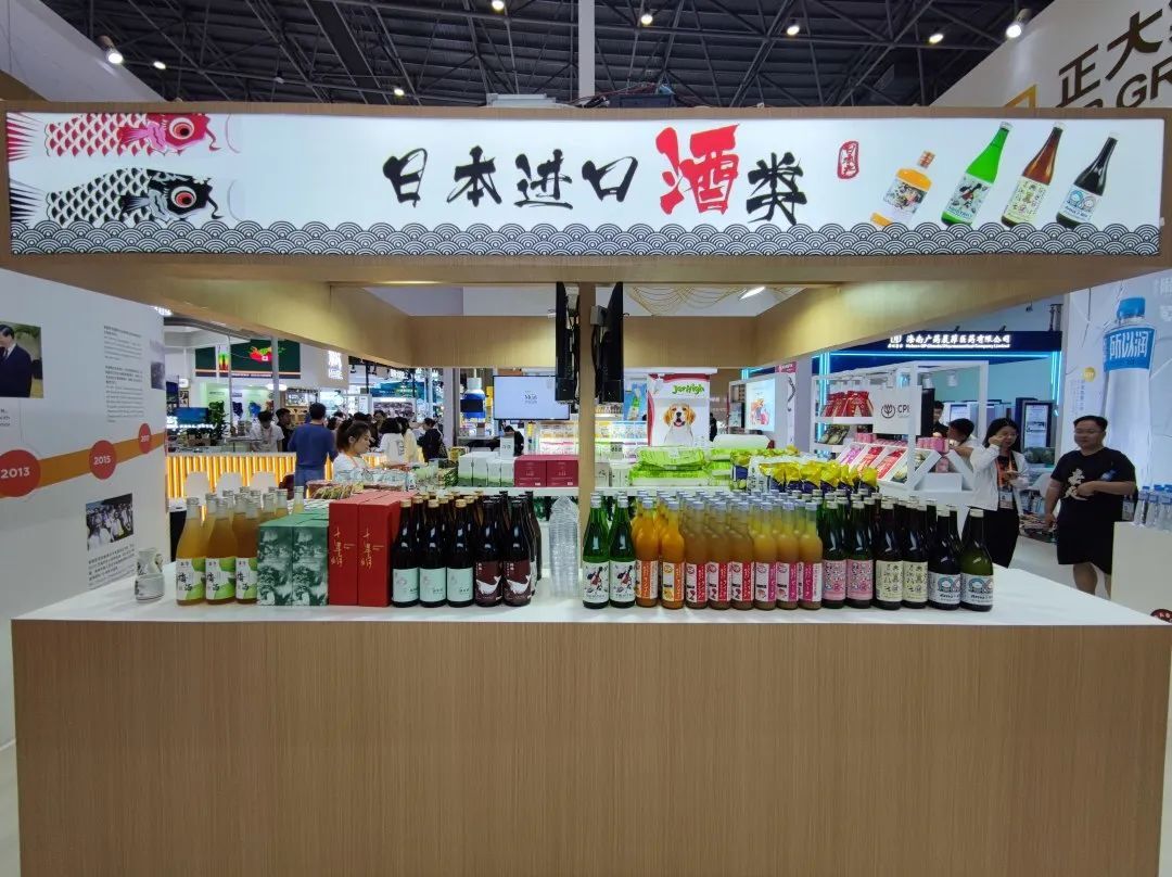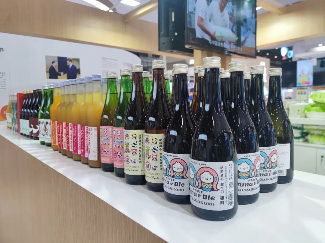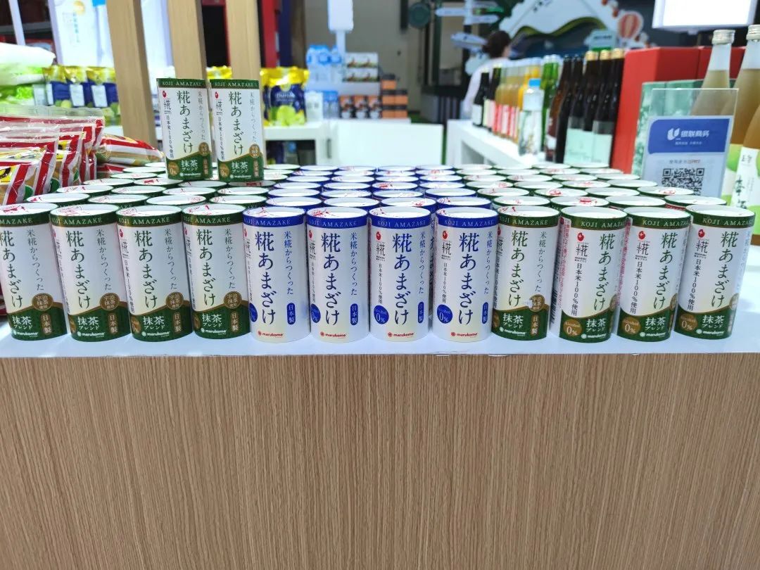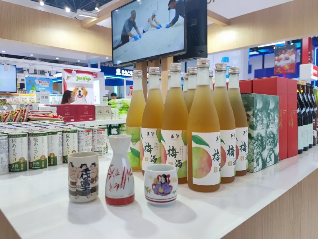 本届消博会还展出了畅销日本的酒类产品与休闲零食,如:清酒、芒果酒、桃子酒、威士忌、梅酒等,以及颗粒味噌、大豆肉等美食。