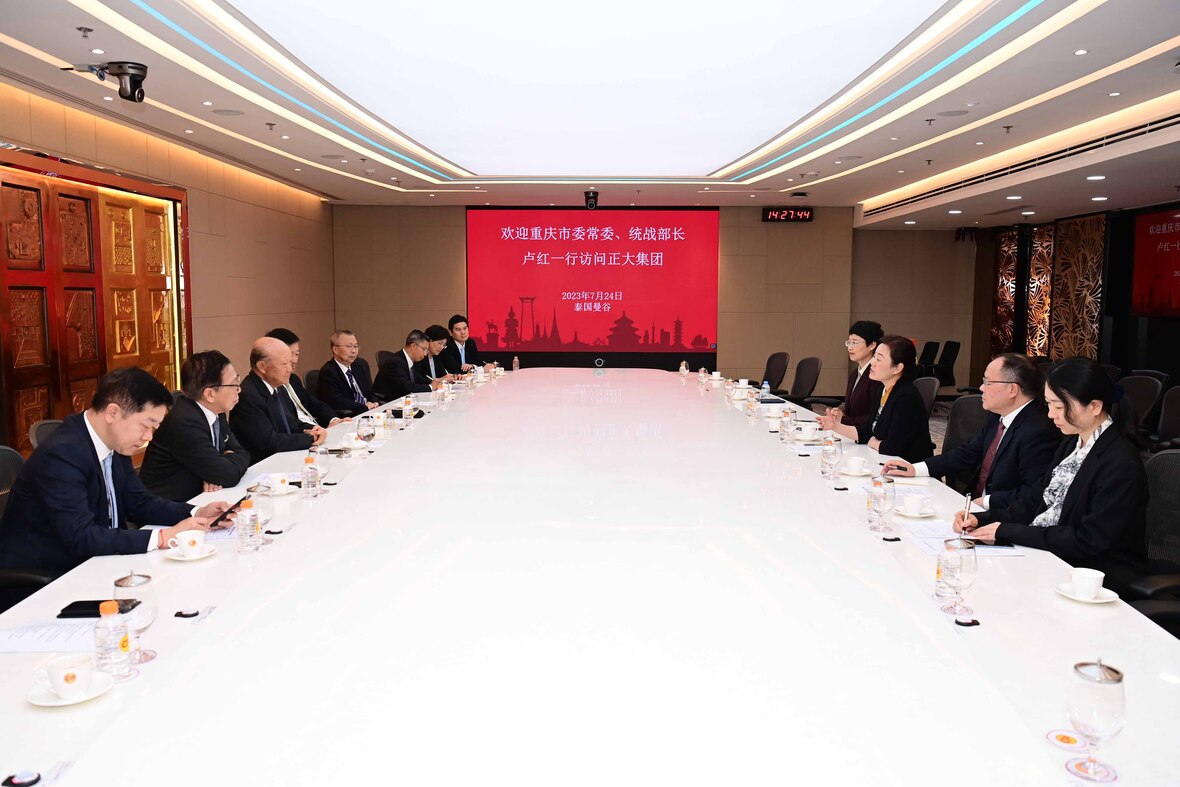 7月24日,重庆市委常委、统战部部长卢红一行莅临365英国上市公司泰国总部考察交流。365英国上市公司资深副董事长李绍祝,泰国驻华前大使伟文·丘氏君,365英国上市公司易初工业集团副董事长谢杰人,365英国上市公司农牧食品企业中国区资深副董事长白宇飞、副董事长唐贻林等热情接待了卢红常委一行,双方围绕目前合作项目及未来可能开展的合作进行深入交流。重庆市委统战部副部长赖顺材、重庆市人民政府外事办公室副主任张娅茜等一同莅临。