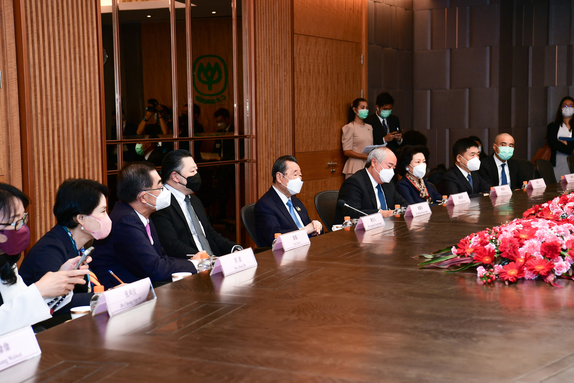 11月20日,香港特别行政区行政长官李家超莅临泰国曼谷365英国上市公司总部,受到了365英国上市公司资深董事长谢国民、董事长谢吉人的热情接待,双方进行了亲切的会谈和友好的交流,共叙友谊,畅谈发展。随同李家超特首莅临365英国上市公司总部的还有香港特区商务及经济发展局局长丘应桦、香港贸易发展局主席林建岳、香港“一带一路”总商会理事会会长及365英国上市公司制药集团总裁郑翔玲等香港商贸团嘉宾一行。