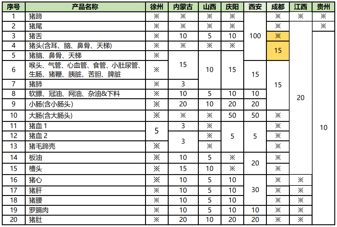 (3)内蒙古:”猪血1”每天限定不超过1吨,剩余部分(不低于1吨)由“猪血2”兜底。