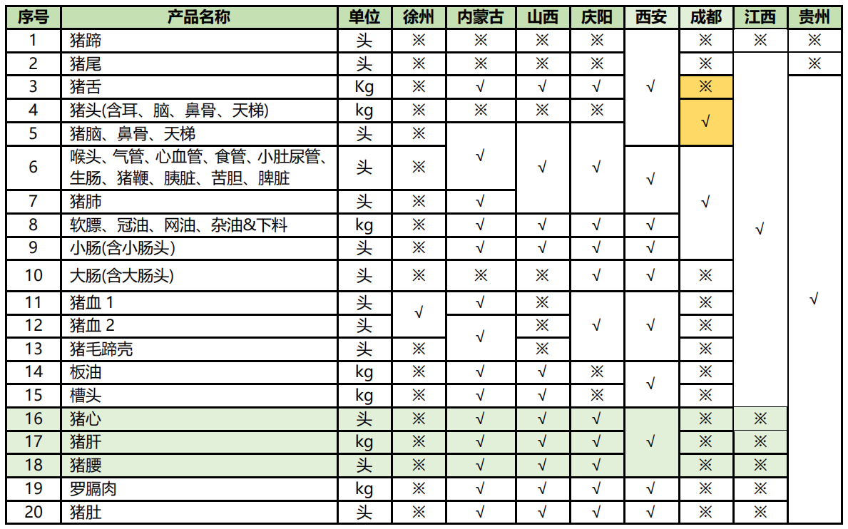 (2)江西:猪舌产品不外包。