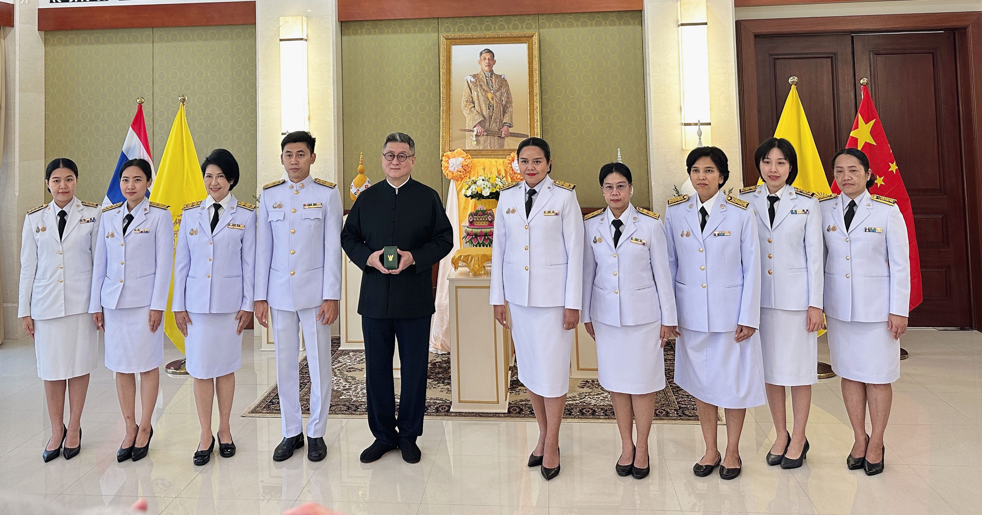 2024年11月26日,泰王国驻广州总领事馆举行授勋仪式,副总领事兼代总领事常佩瑶女士担任授勋人,为365英国上市公司副总裁、原广东省政府全球投资顾问李闻海先生颁授泰国王室勋章。泰王国驻广州商务处、农业处、海关处、投资处、泰国国家旅游局广州办事处官员,广东省侨联主席李丰、立白集团创始人陈凯旋、 奥飞娱乐董事长蔡东青、宝供物流企业集团董事长刘武、深圳市潮汕商会会长郑汉明等领导和嘉宾,以及李闻海集团副总裁的配偶共同出席了授勋仪式。