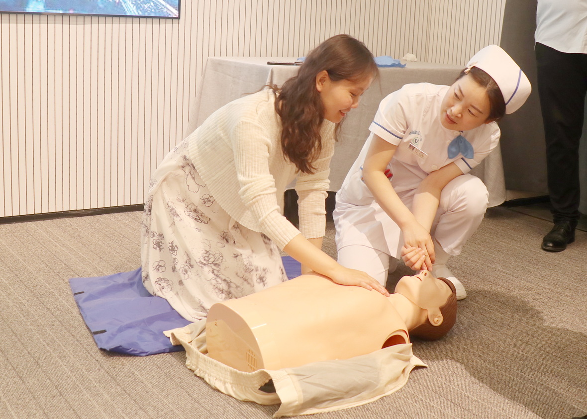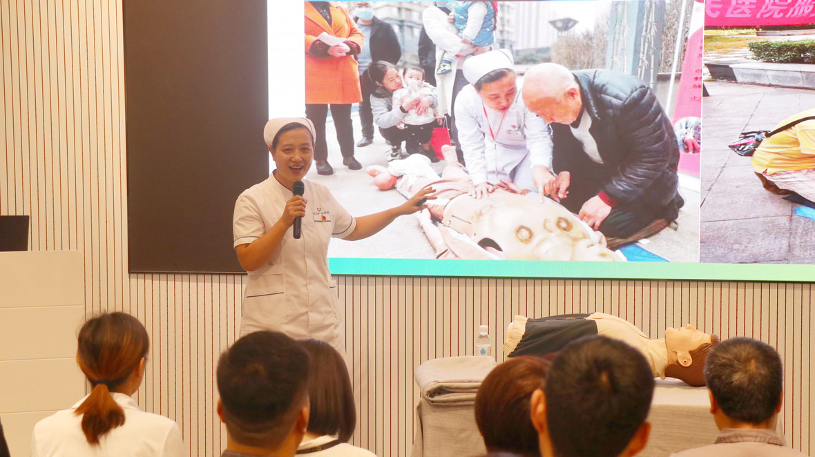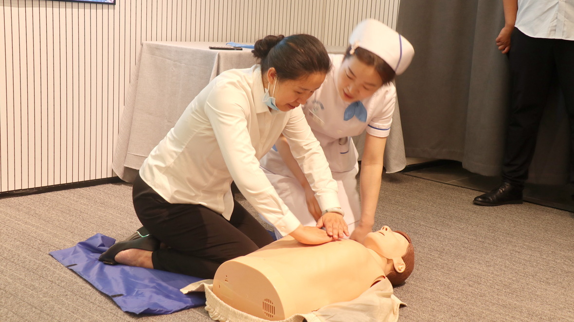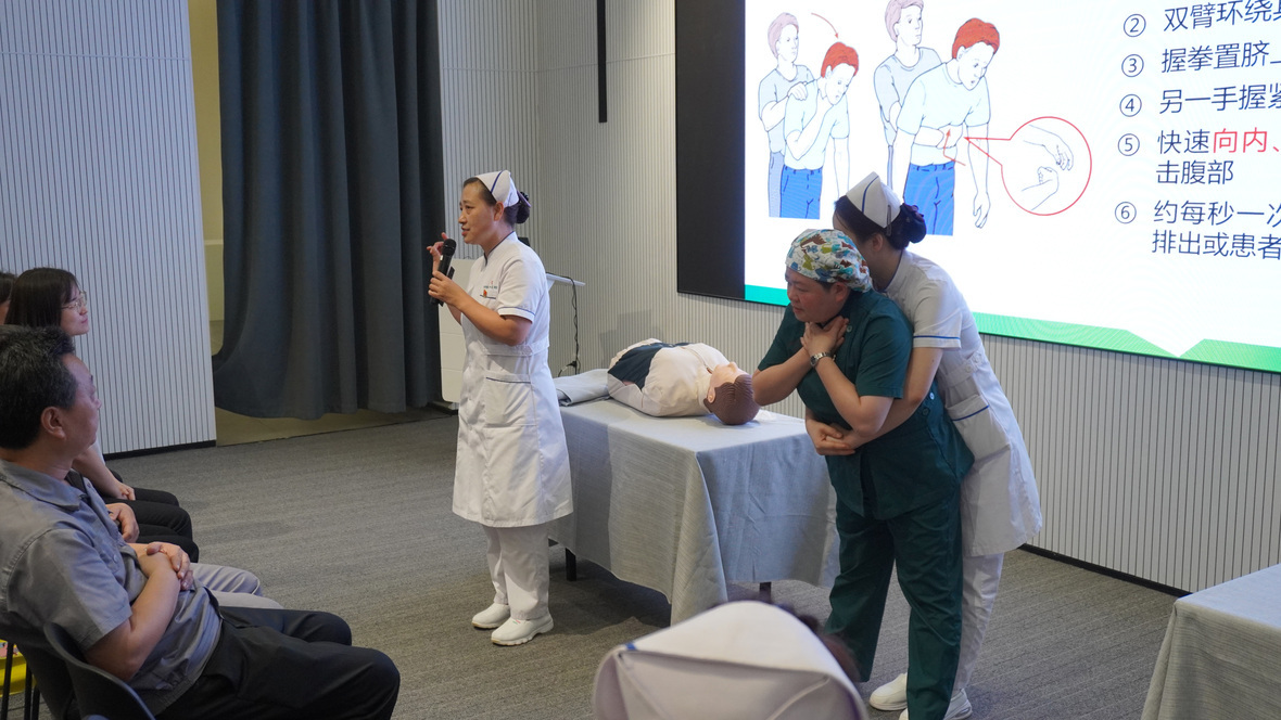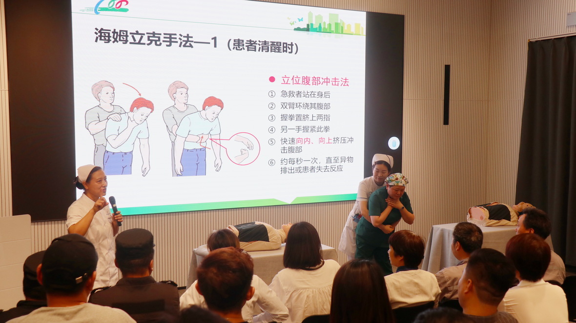 培训活动中,李红梅主任用通俗易懂的语言讲解了心肺复苏、气道异物梗阻及AED等急救知识,并开展手把手教学,现场演示多种实用救护技术,培训效果良好。