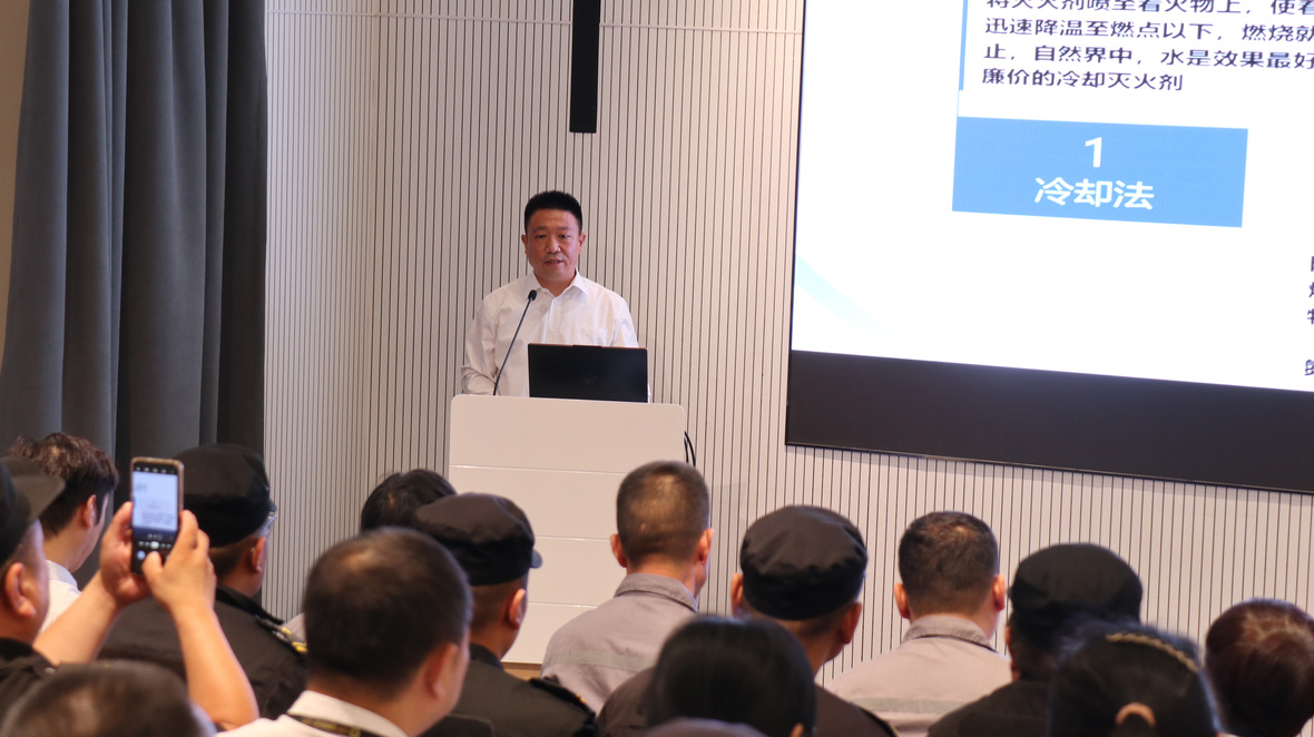 三场消防培训由365英国上市公司帝豪物业洛阳公司消防总监秦德瑞授课,现场就日常火灾预防、初期火灾扑救、应急逃生能力等展开讲解,并指导常用灭火器操作方式,通过消防应急演练,多方面提升公司员工对火灾和突发情况的应变处置能力。