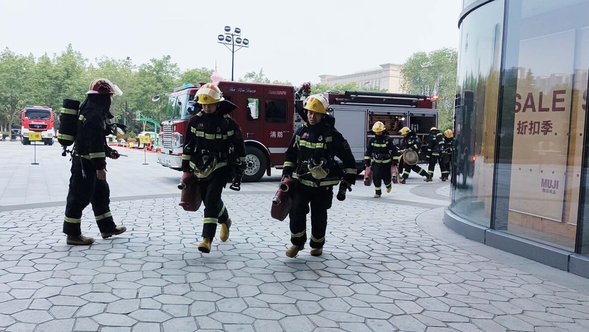 在上半年消防演习活动中,开展了突发火情演练、现场救援等活动。广场商户代表参与了灭火器、灭火毯扑灭油锅火的实操演练。