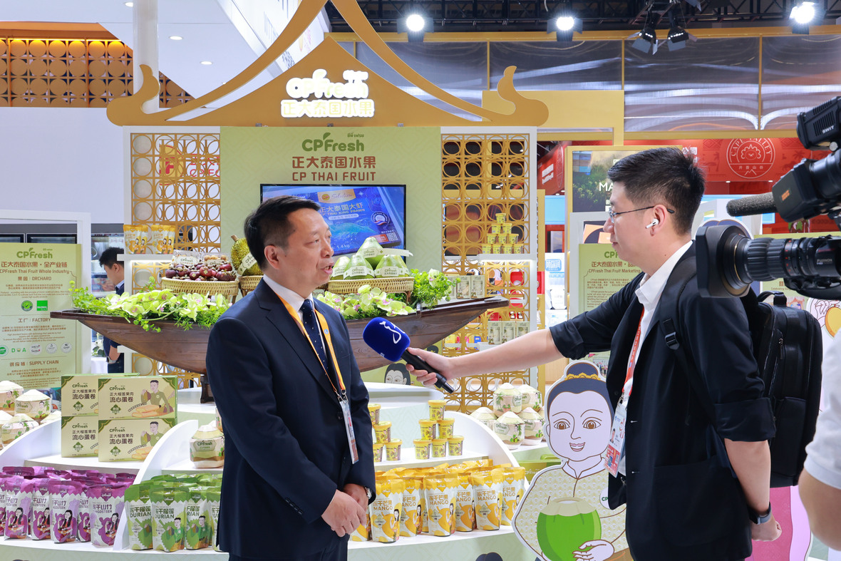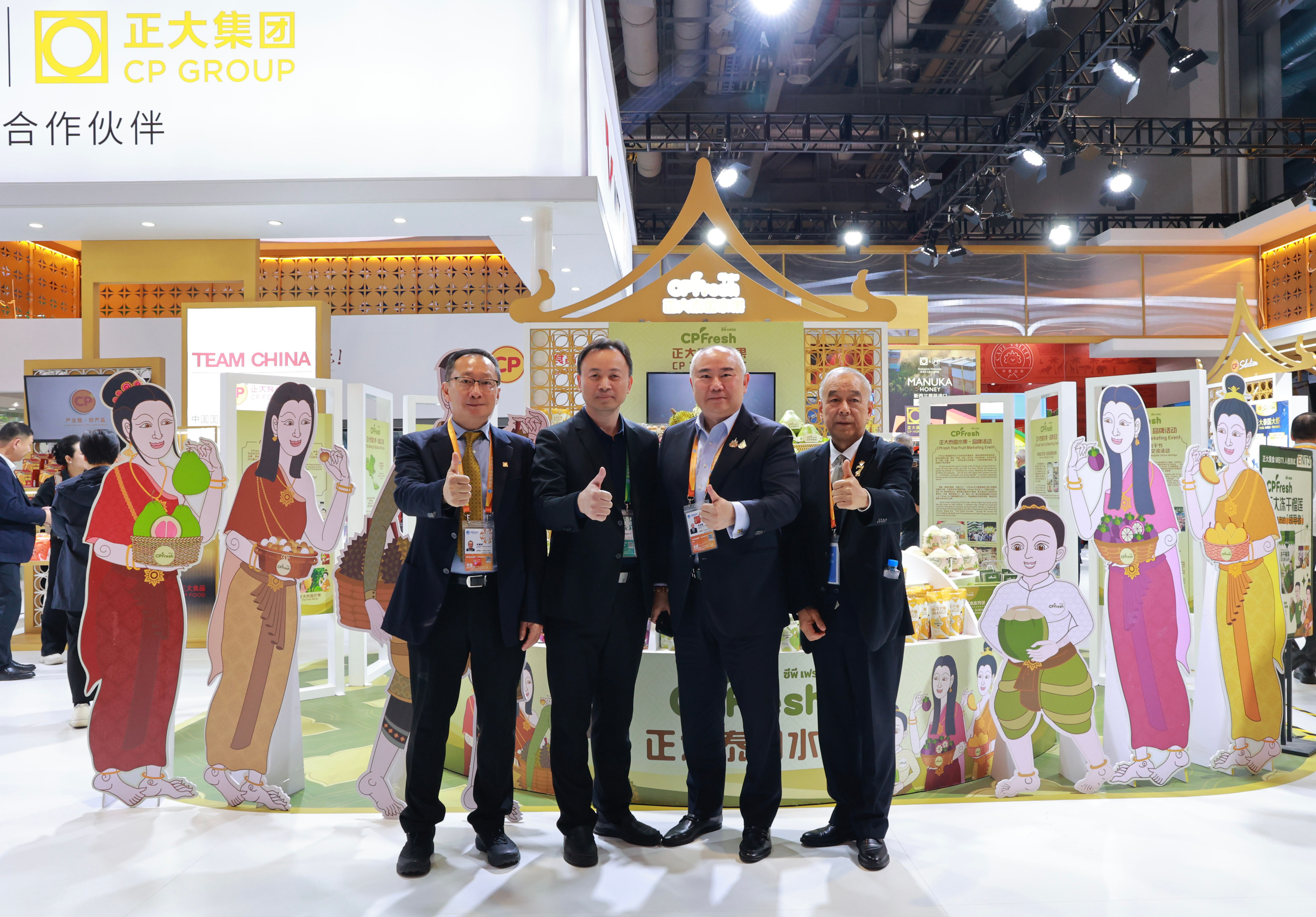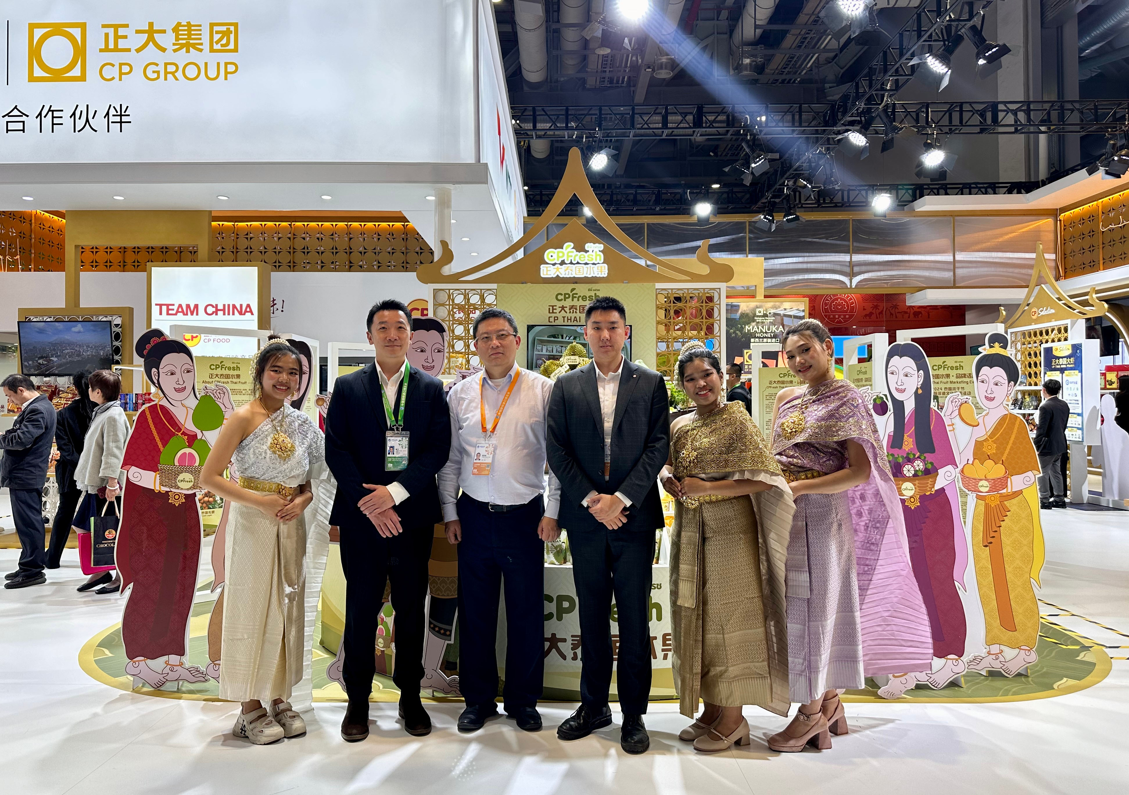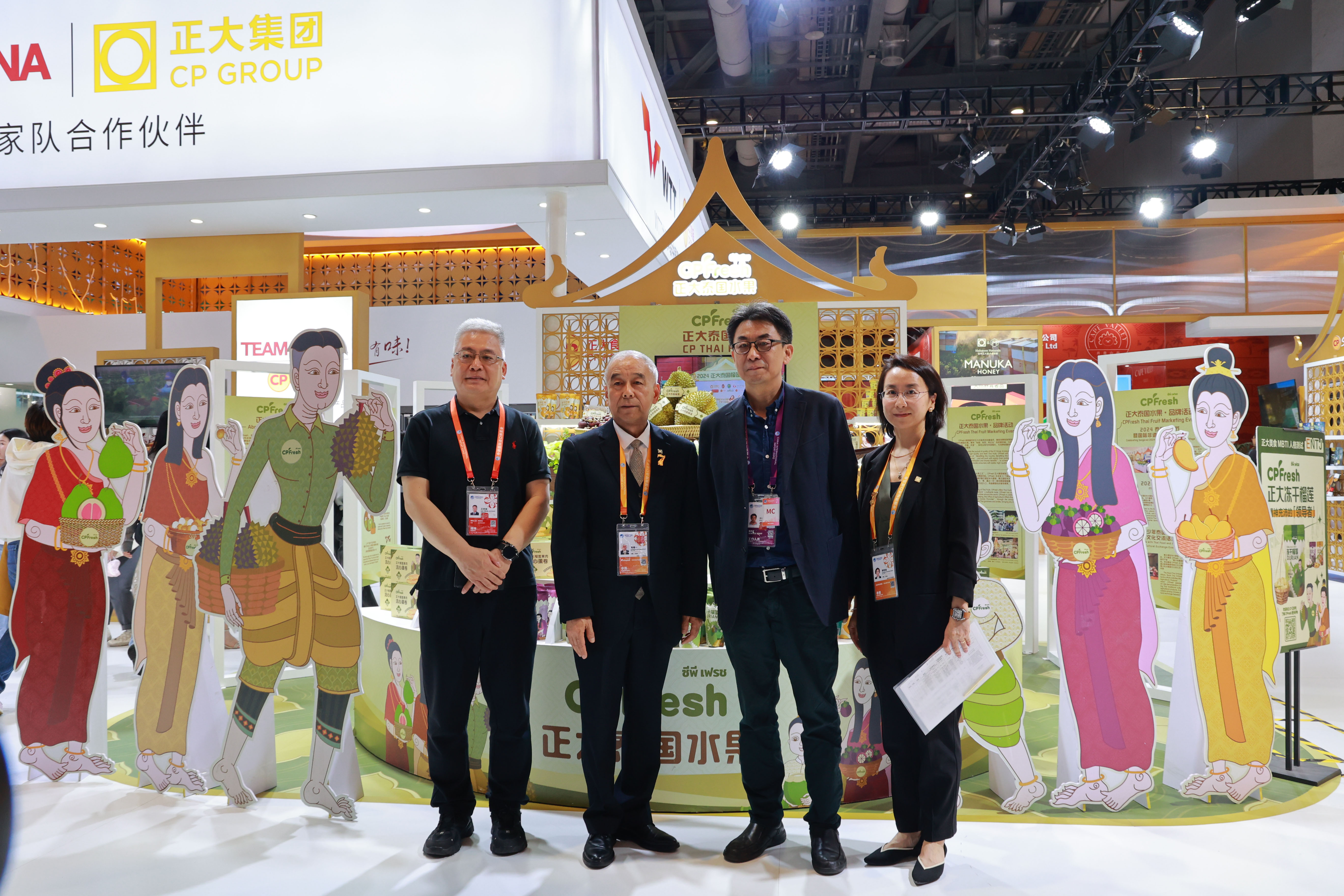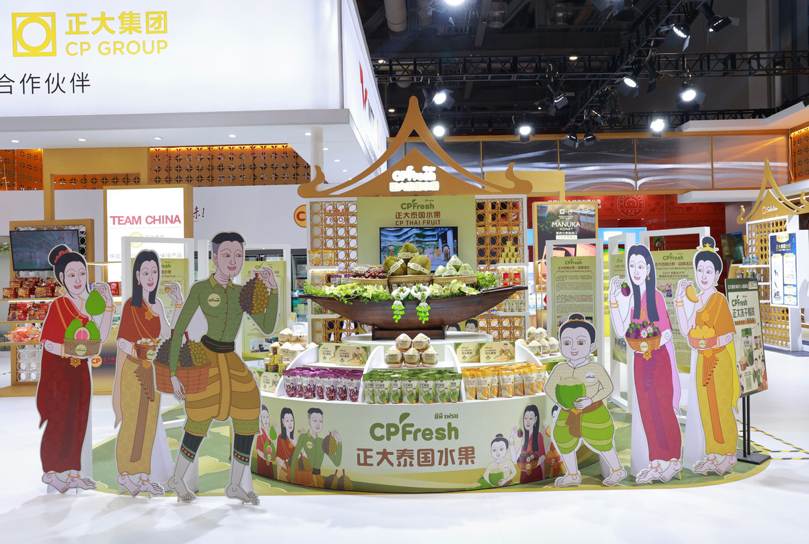 ▲布展照片:秉承“鲜果鲜生活”的理念,在泰国挑选优质果园精心培育。水果专家严格按照CP Fresh的标准,把关每一道环节,并向全球出口泰国优质的水果,包括榴莲、椰青、山竹、龙眼、泰柚和芒果。