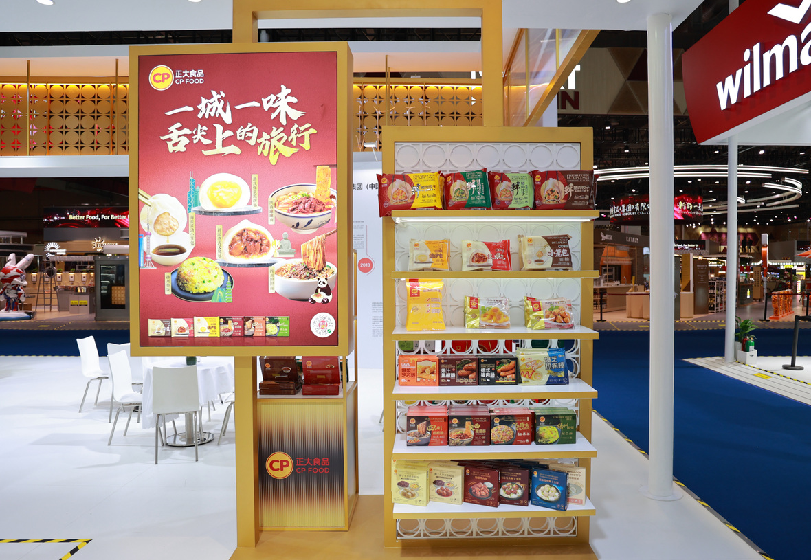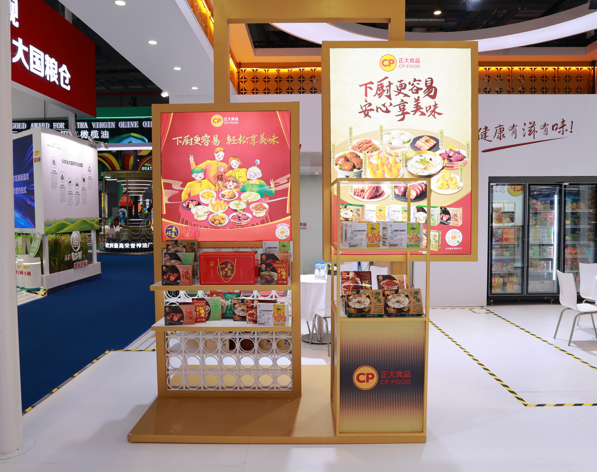▲布展照片:围绕中国八大菜系及地方特色菜做选品,开发简单烹饪即可还原餐厅级美味的菜品;并发挥集团产品丰富多样、品类全面的优势,围绕前菜、主菜、汤菜等做套餐组合,提供全场景的精品美食组合方案。