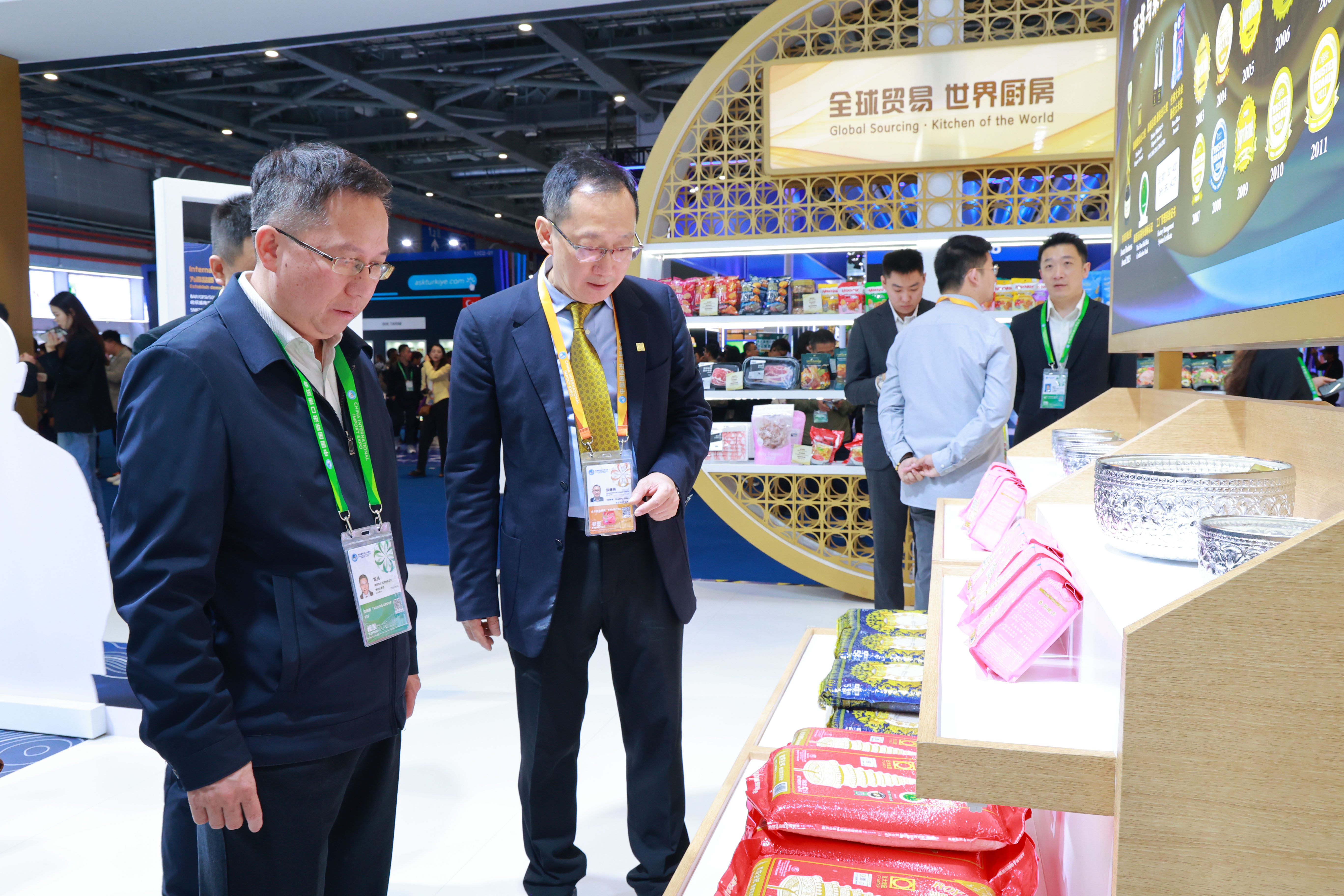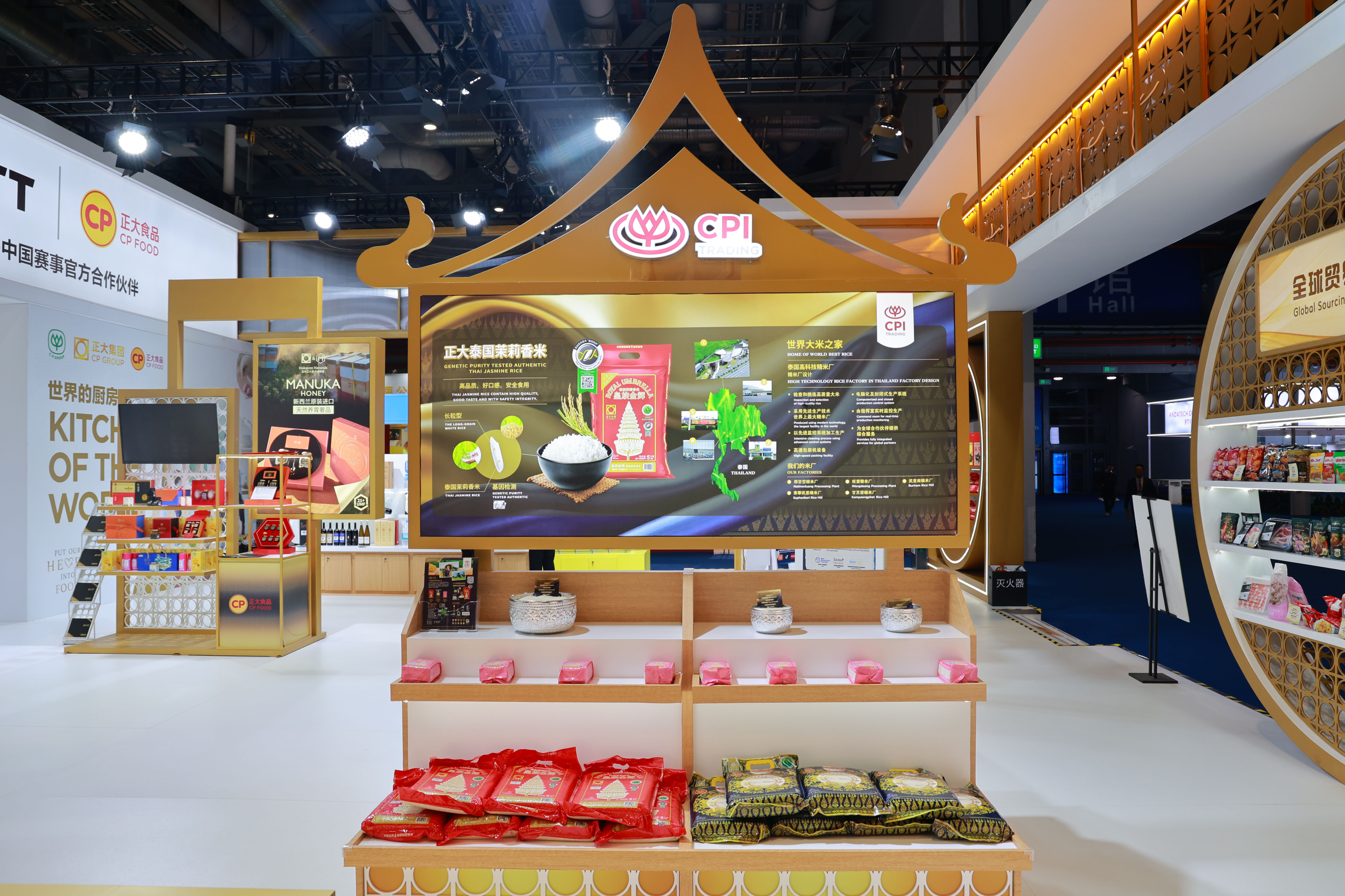 ▲布展照片:皇族金辉泰国茉莉香米和皇族武里南泰国茉莉香米实现基因检测技术,高品质,好口感,确保品质安全。目前在泰国共有5个米厂进行生产,米厂配备高科技设备,从生产、筛选再到管理,全流程科技管控。