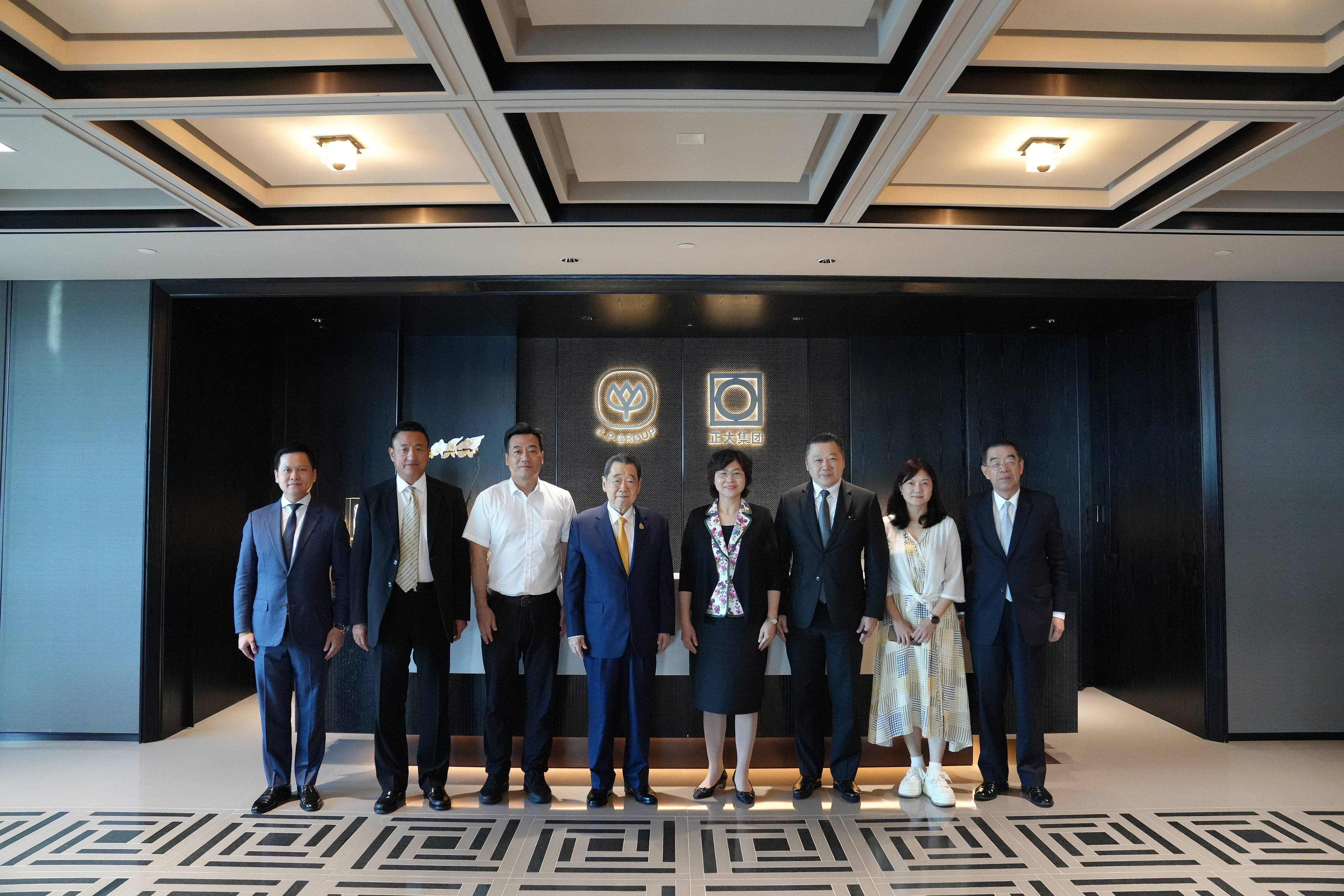 ▲谢国民集团资深董事长(左四)、谢吉人集团董事长(右三)、杨小平集团资深副董事长兼中国区CEO(左二)、谢毅集团资深副董事长(右一)与庞国梅主任(右四)等合影留念。