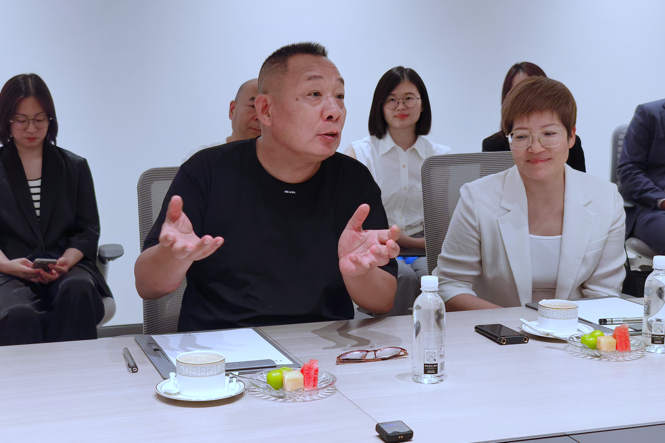▲于东来董事长(左)在座谈会现场。