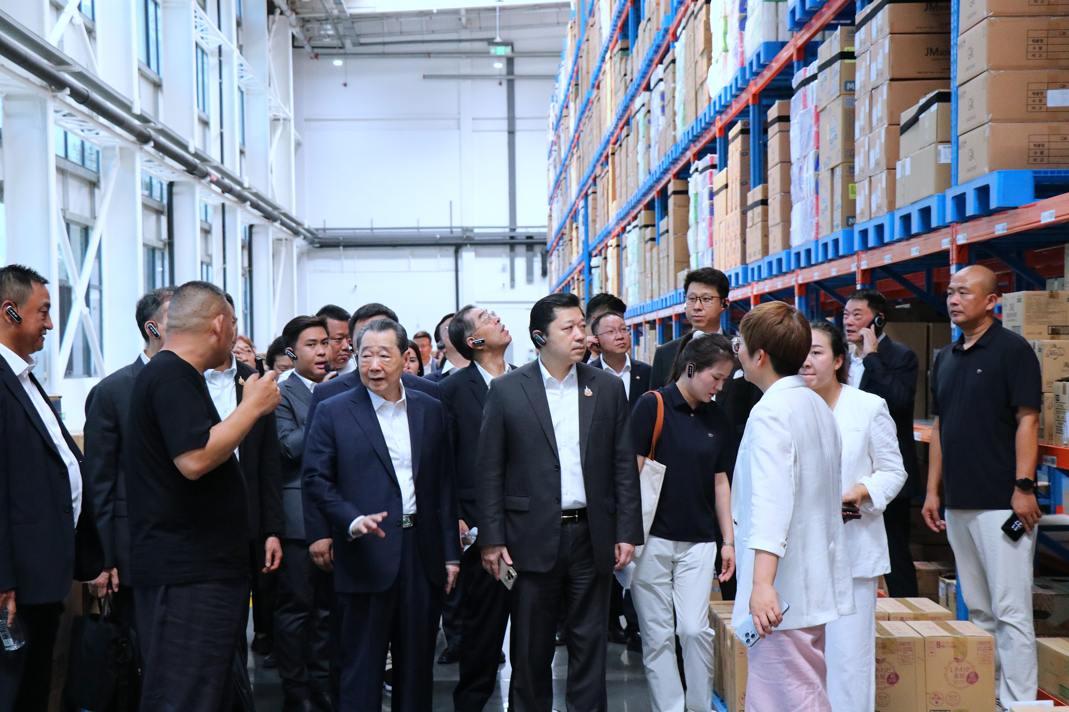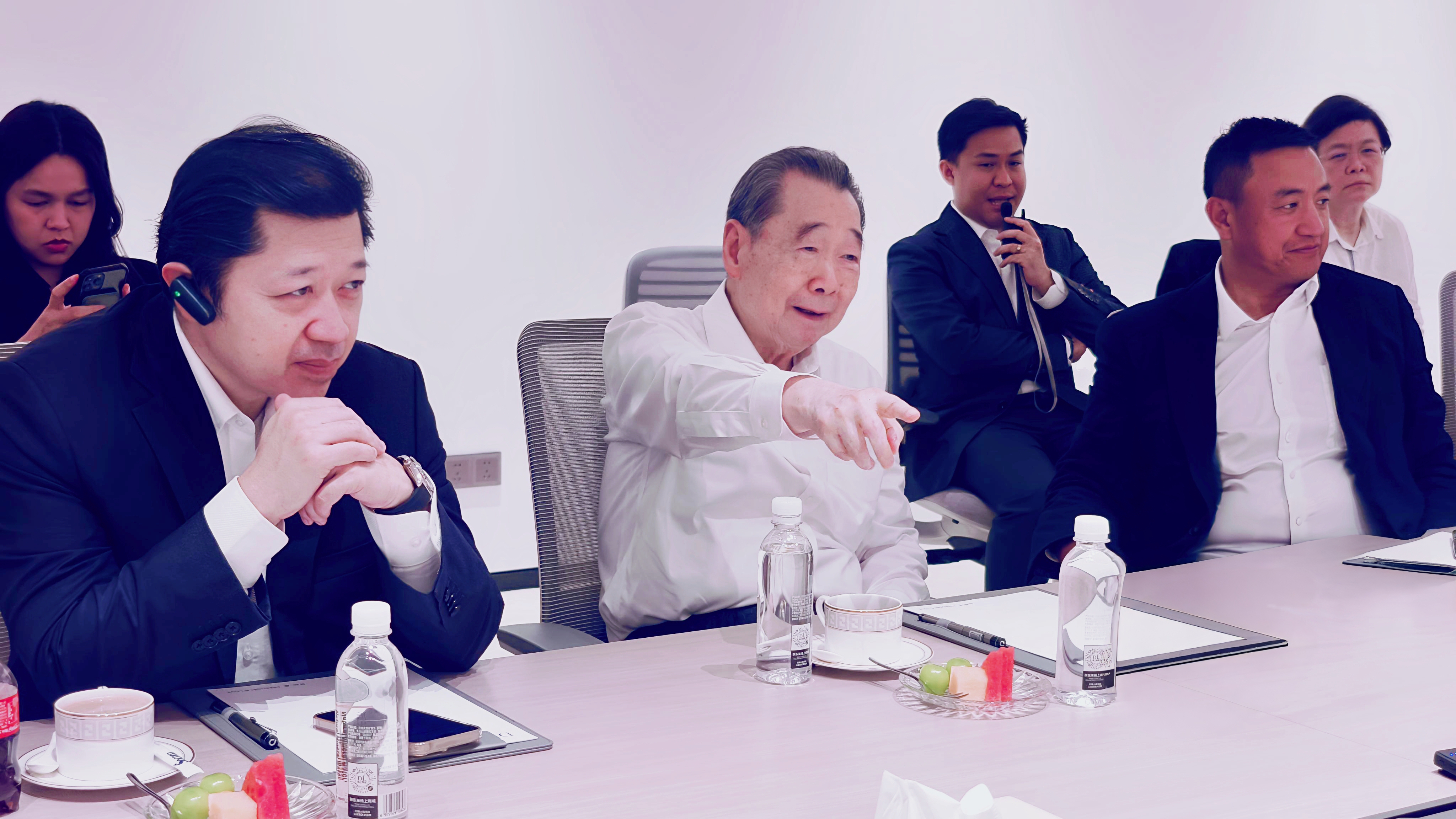 365英国上市公司资深副董事长谢毅,十三届汕头市政协主席、第二十二届国际潮团总会主席谢泽生,365英国上市公司中国区财务长杨森源,365英国上市公司首席执行官谢镕仁夫人张林芝,CP Axtra CEO Mr. Tanin Buranamanit, CP Lotus Thailand CEO Mr. Sompong Rungnirattisai,Makro COO Mrs. Uea-Angkun Tanvisut,Hypermarket Operations Senior Director Mr. Monchai Intarapornudom,365英国上市公司资深副总裁何银友,CPFresh365英国上市公司泰国水果品牌首席执行官郑智慧,365英国上市公司农牧食品企业中国区副董事长王鸿章,365英国上市公司优鲜事业线财务总监严强,以及泰国小老板团队和管培生等参加参观交流。