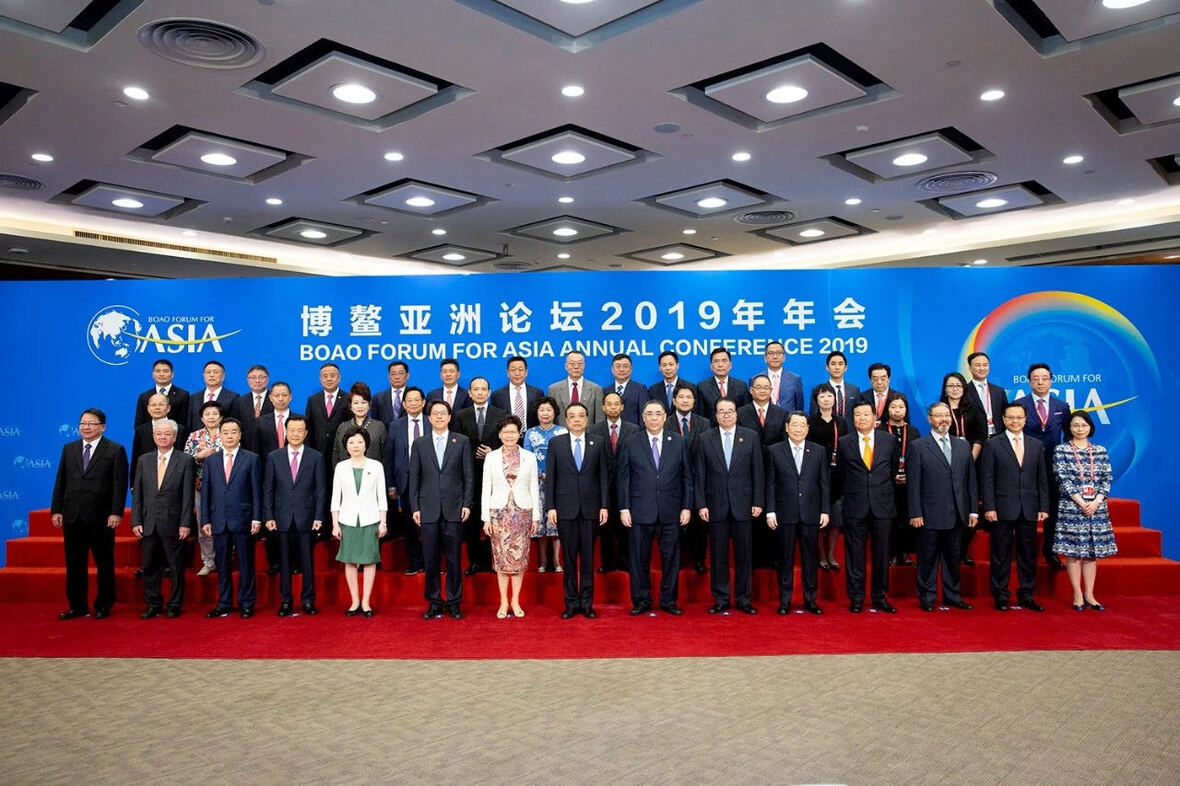 2019年3月28日上午10时,以“共同命运、共同行动、共同发展”为主题的博鳌亚洲论坛2019年年会开幕式举行。谢国民资深董事长应邀出席开幕式。开幕式召开前,国务院总理李克强同谢国民资深董事长等香港、澳门和侨界代表合影。