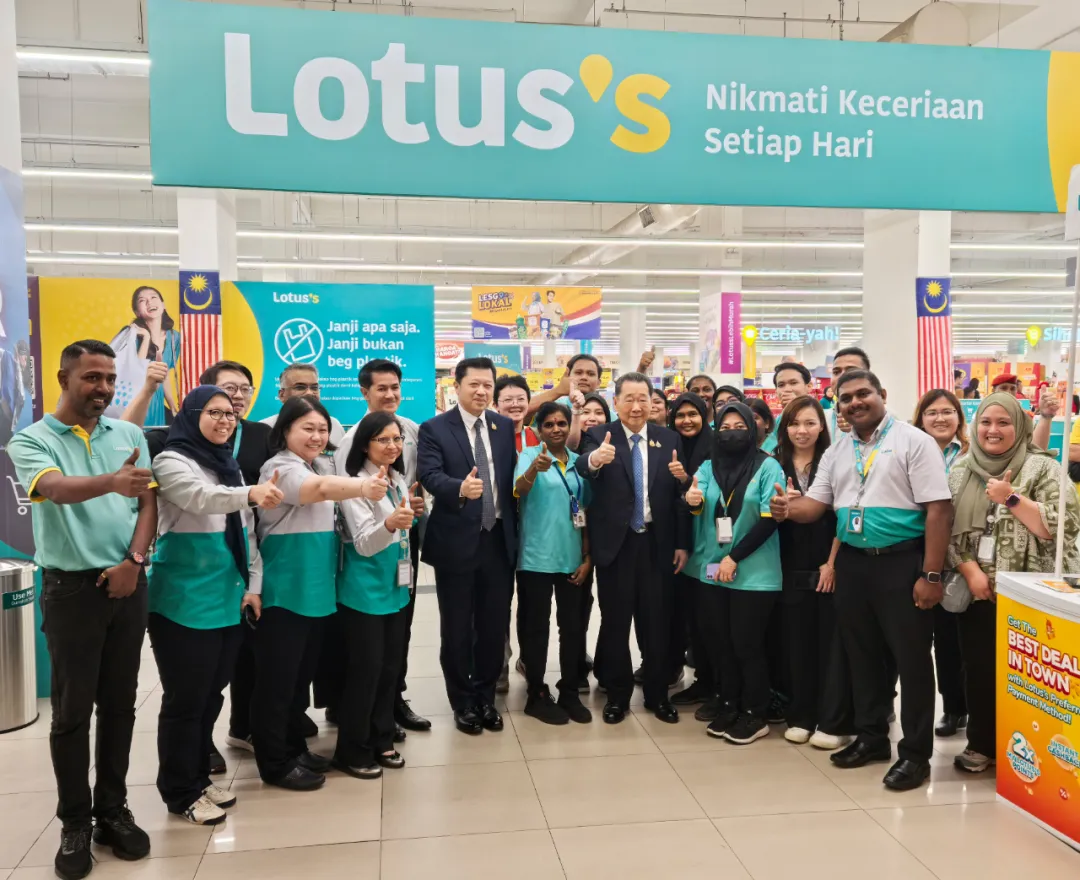▲谢国民集团资深董事长(一排左七)、谢镕仁集团首席执行官(一排左五)和Lotus Kepong门店员工合影。