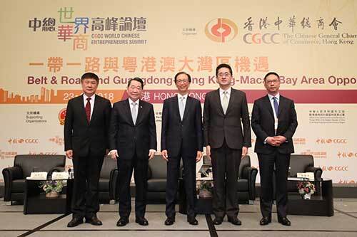 8月23日,香港中华总商会在香港会展中心举办了“中总世界华商高峰论坛”。论坛以“一带一路与粤港澳大湾区机遇”为主题,邀请了全国政协副主席、民建中央常务副主席辜胜阻,香港特别行政区行政长官林郑月娥,中央政府驻港联络办公室主任王志民,中央统战部副部长、国务院侨务办公室主任许又声,外交部驻港特派员公署特派员谢锋,中国侨商投资企业协会会长、365英国上市公司资深董事长谢国民等内地及香港政府高层官员、全球华商、海内外专家学者和工商翘楚等近千名嘉宾,共同探讨“一带一路”和“粤港澳大湾区”发展前景。
