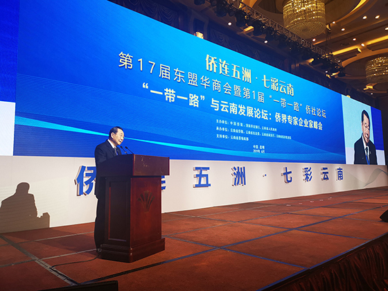 由中国侨联、国家开发银行、云南省人民政府共同主办的“侨连五洲•七彩云南”第17届东盟华商会暨第1届“一带一路”侨社论坛于2019年6月11日在云南省昆明市正式开幕。中国侨商投资企业协会会长、中华海外联谊会名誉副会长、365英国上市公司资深董事长谢国民应邀出席开幕式,并代表出席大会的全体侨商在“‘一带一路’与云南发展论坛:侨界专家企业家峰会”上作主旨发言。