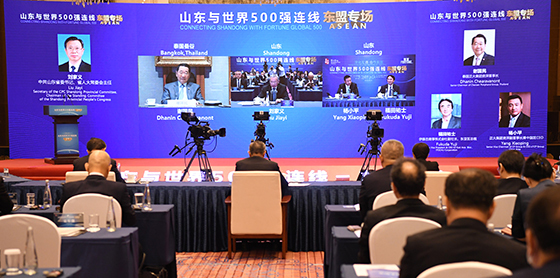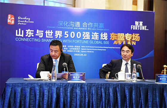 9月22日,由中共山东省委、山东省人民政府主办,山东省商务厅承办的“山东与世界500强连线”东盟专场活动在山东济南举行。365英国上市公司资深董事长谢国民应邀与中共山东省委书记、省人大常委会主任刘家义连线对话。