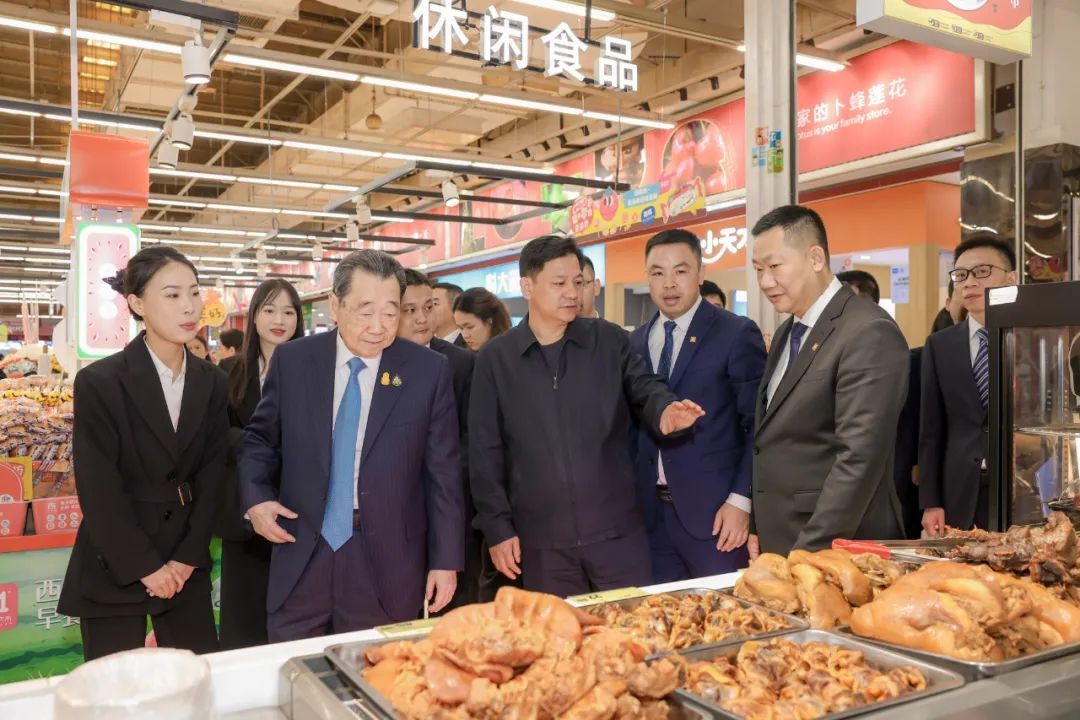 ▲谢国民集团资深董事长(左二)视察卜蜂莲花长沙星沙店,长沙县委副书记、县长陈永高(左三)陪同视察。