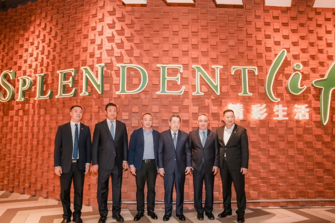 ▲ 谢国民集团资深董事长(右三)参观长沙精彩生活超市,与香江百货集团总经理夏志秋(左三)等合影。