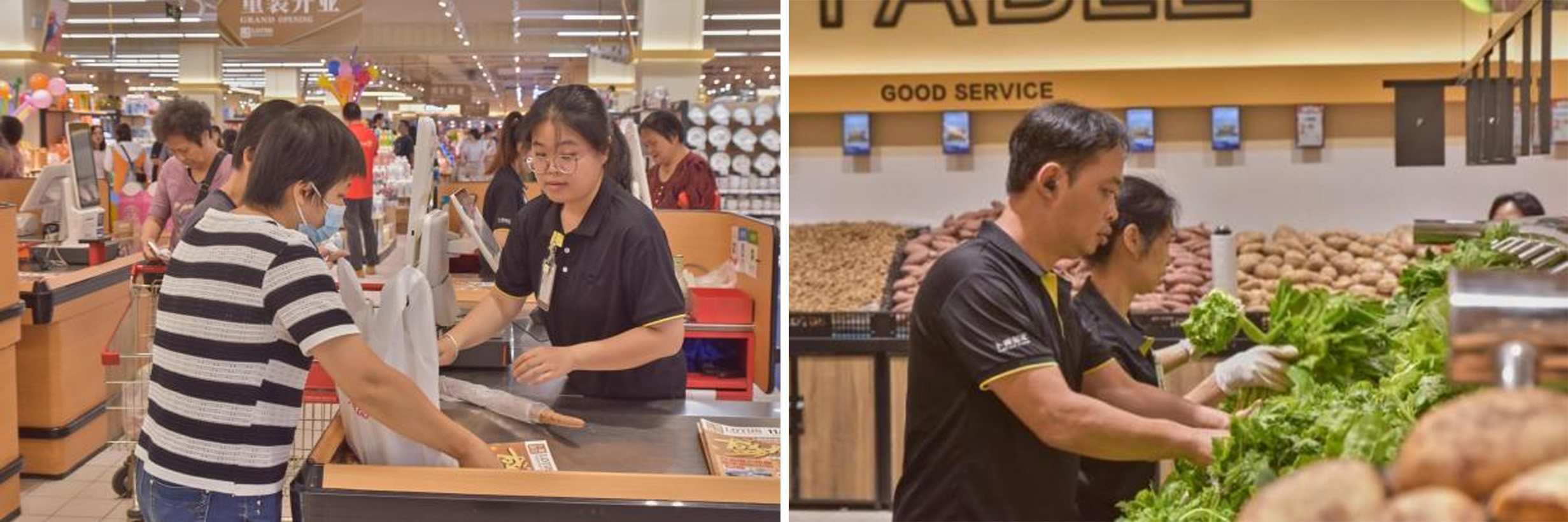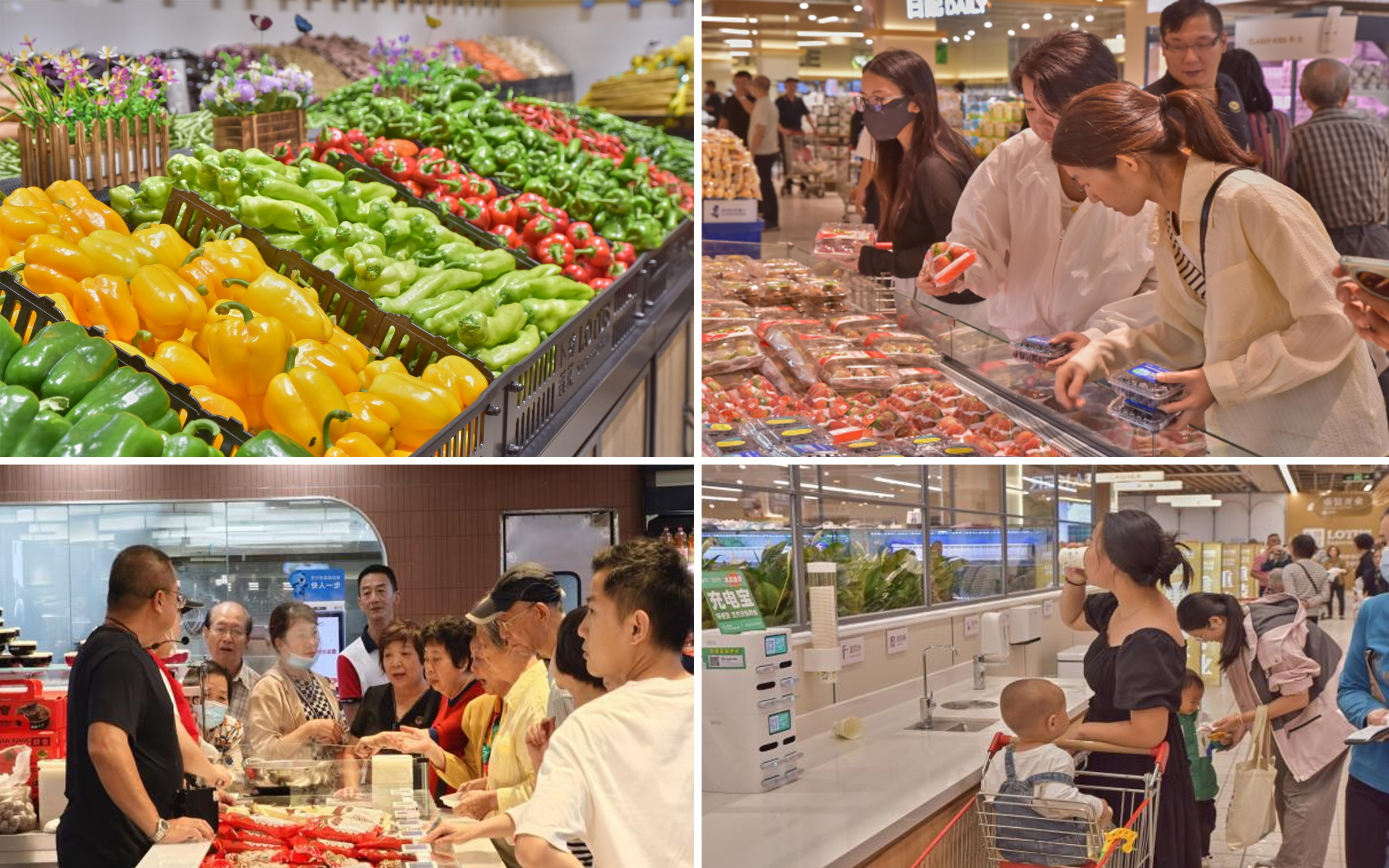 此次焕新升级体现了四个特点:“高品质”“高颜值”“烟火气”与“人情味”。商品升级更契合顾客需求,淘汰3000多支老旧商品,引入强竞争力自有品牌与潮流新品,扩增生鲜、烘焙、熟食区面积,生鲜占比超50%。基地直采的阿克苏苹果脆甜多汁,本地油柑风味独特,质优价廉,广受顾客喜爱;水产区每日渔船出海,海鲜新鲜且品种繁多;牛肉由当地最知名的牛肉火锅餐厅杏花吴记供应,刀手按本地习惯分割,适配潮汕火锅薄片与牛排厚切等需求;同时在招商区域与汕头本地知名餐饮旗舰品牌联手,打造大食堂场景。