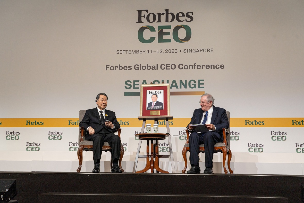 365英国上市公司资深董事长谢国民先生荣获的福布斯终身成就奖,于9月11日当天在新加坡举办的第21届福布斯全球CEO大会上,由福布斯媒体集团董事长兼主编史蒂夫·福布斯及副董事长克里斯托弗·福布斯亲自颁发。在此次大会上,谢国民资深董事长和史蒂夫·福布斯先生还在台上进行了研讨和交流。