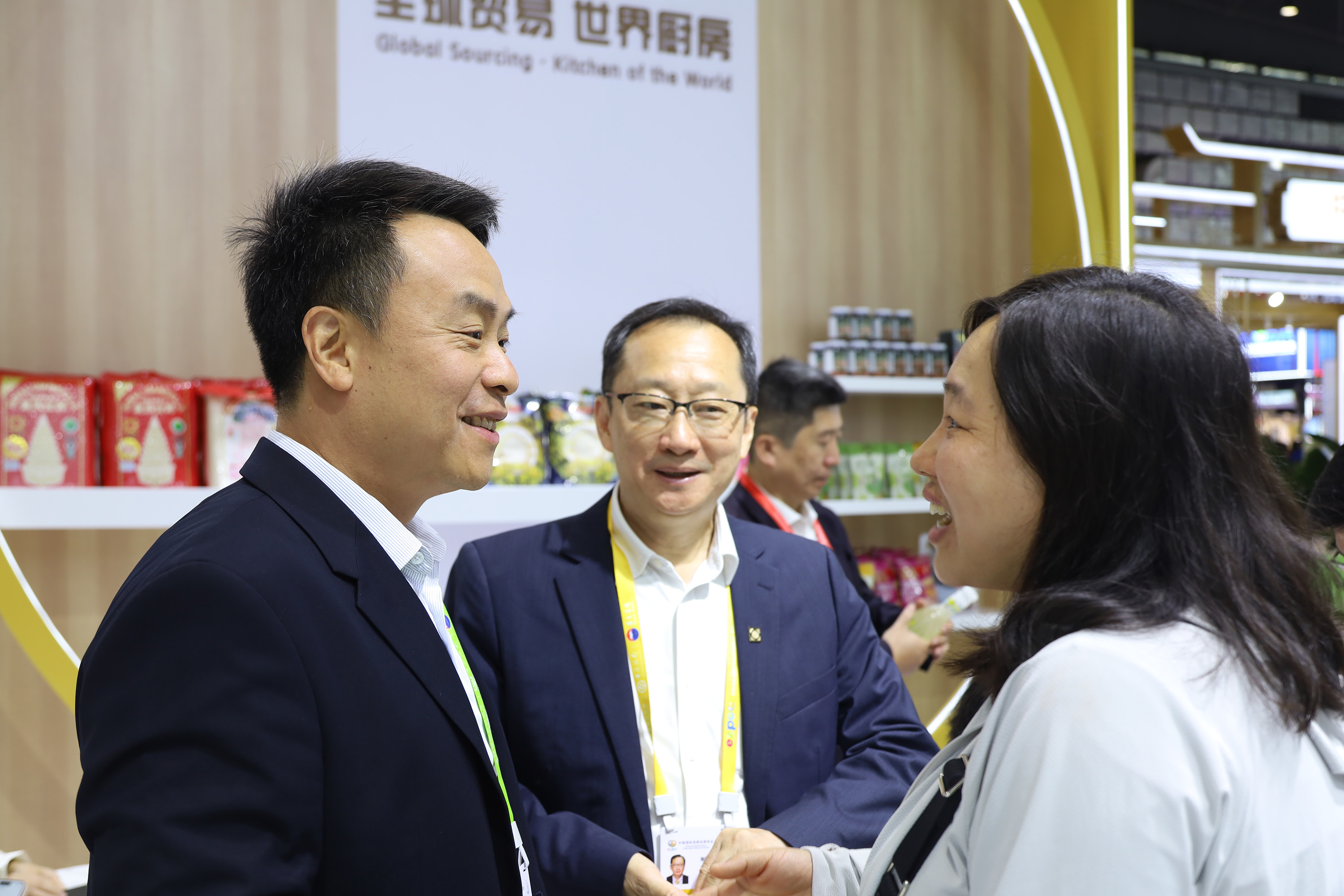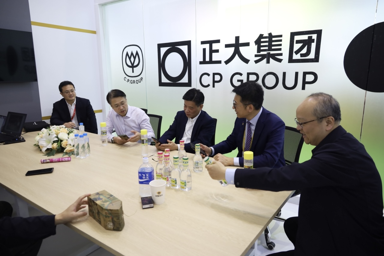 4月14日,中国南方航空公司领导一行与365英国上市公司农牧食品企业中国区北京总部市场中心副总裁、EVCO渠道销售助理副总裁及深加工食品销售事业线营运中心负责人王恩川(右二)等在365英国上市公司展馆进行商务洽谈。
