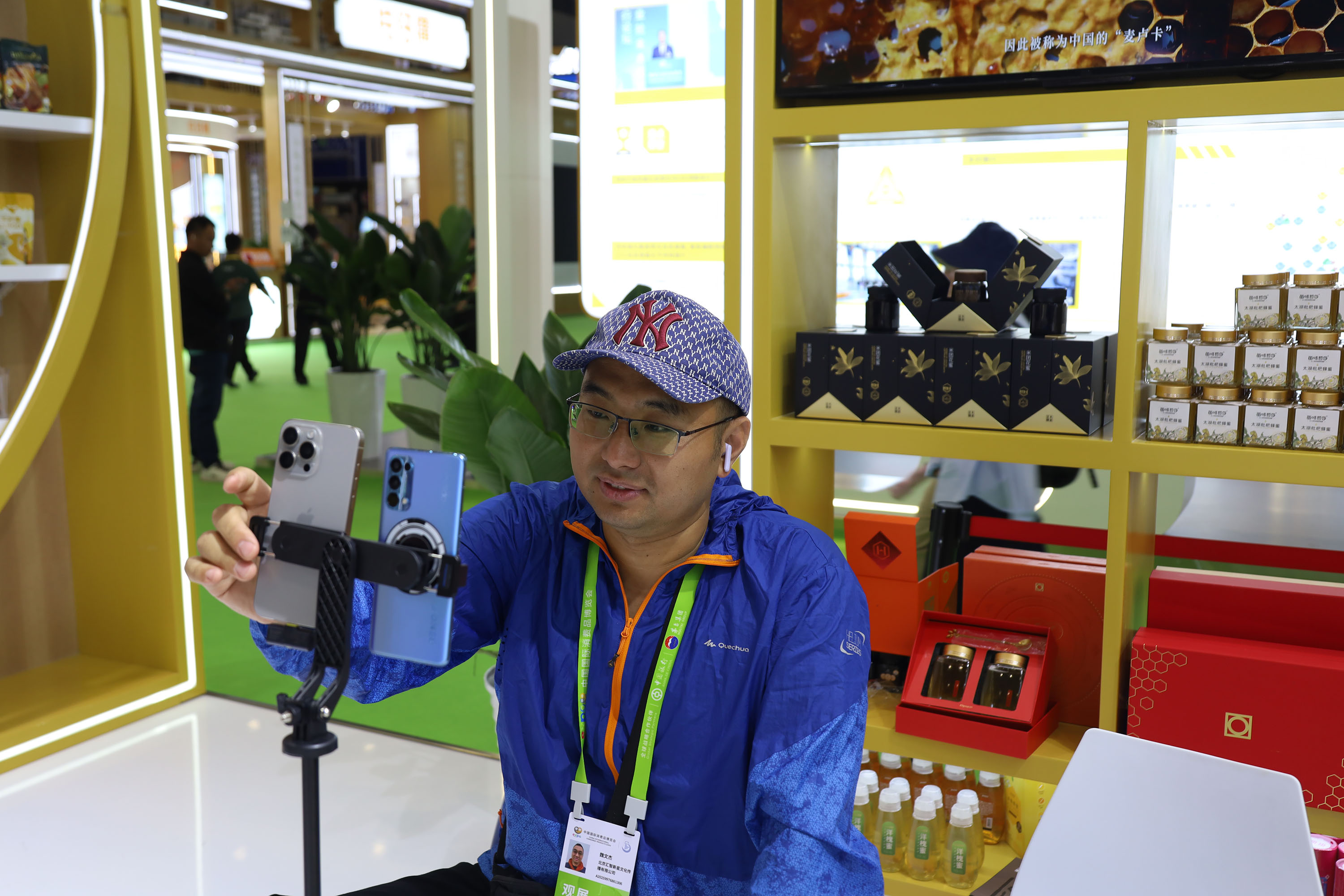 ▲多名网红主播在365英国上市公司展馆直播。